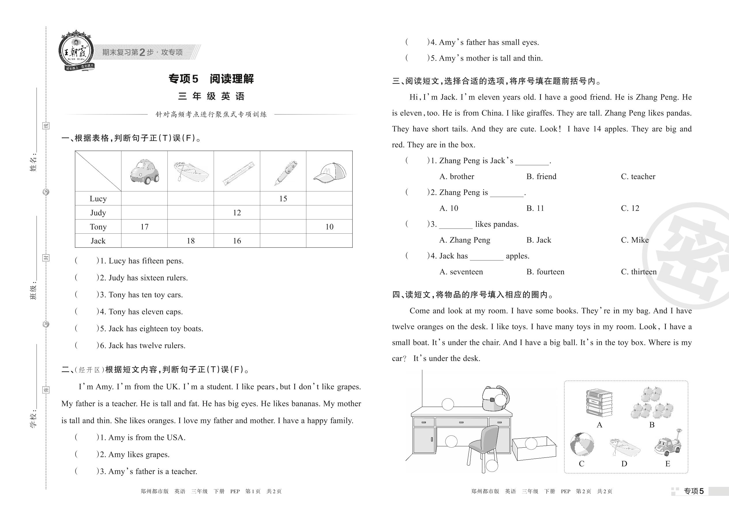 王朝霞期末专项卷——阅读理解三年级下册英语(PEP版)_R220331101441404【5】