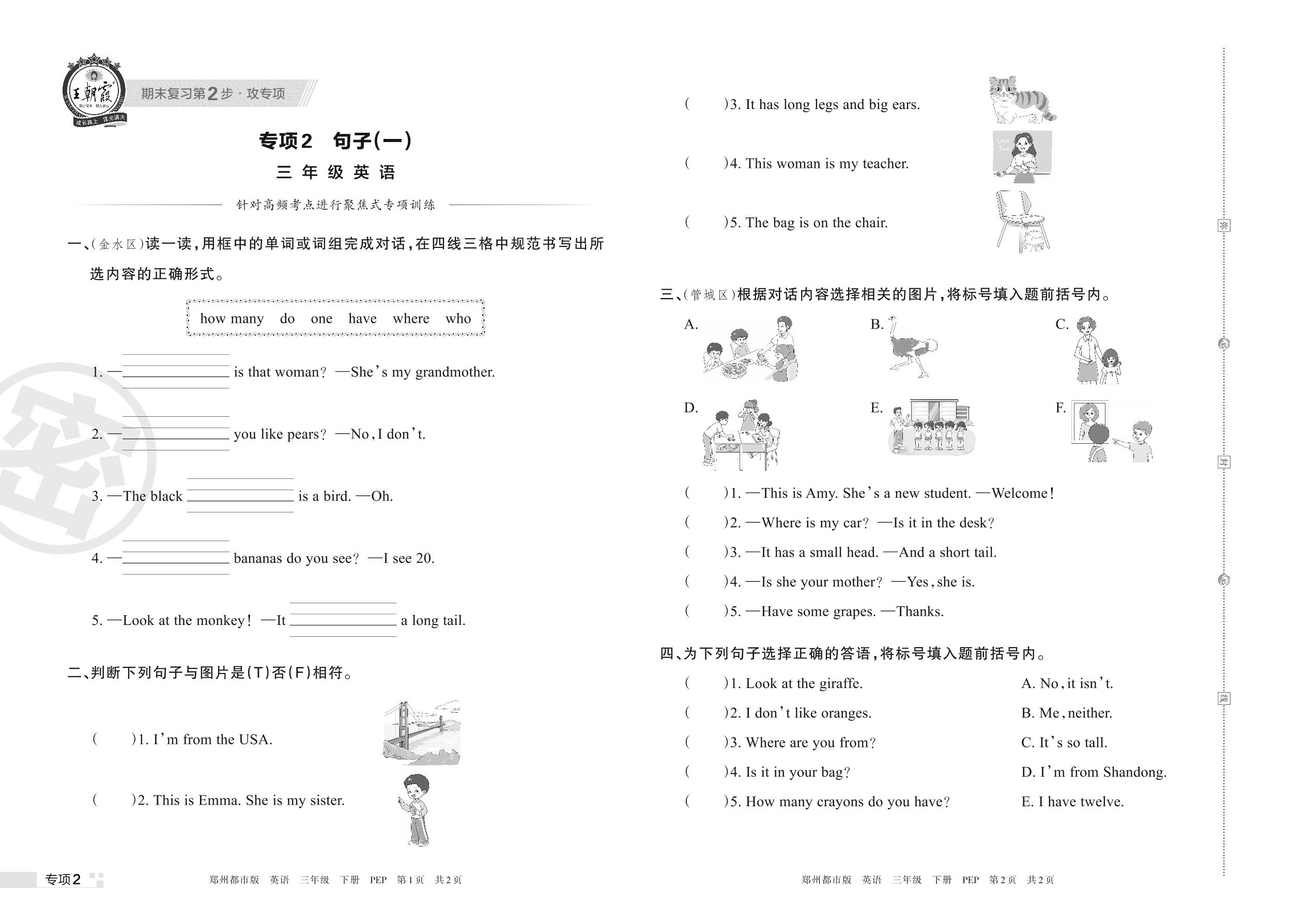 王朝霞期末专项卷——句子(一)三年级下册英语(PEP版)_R220331101441731【2】