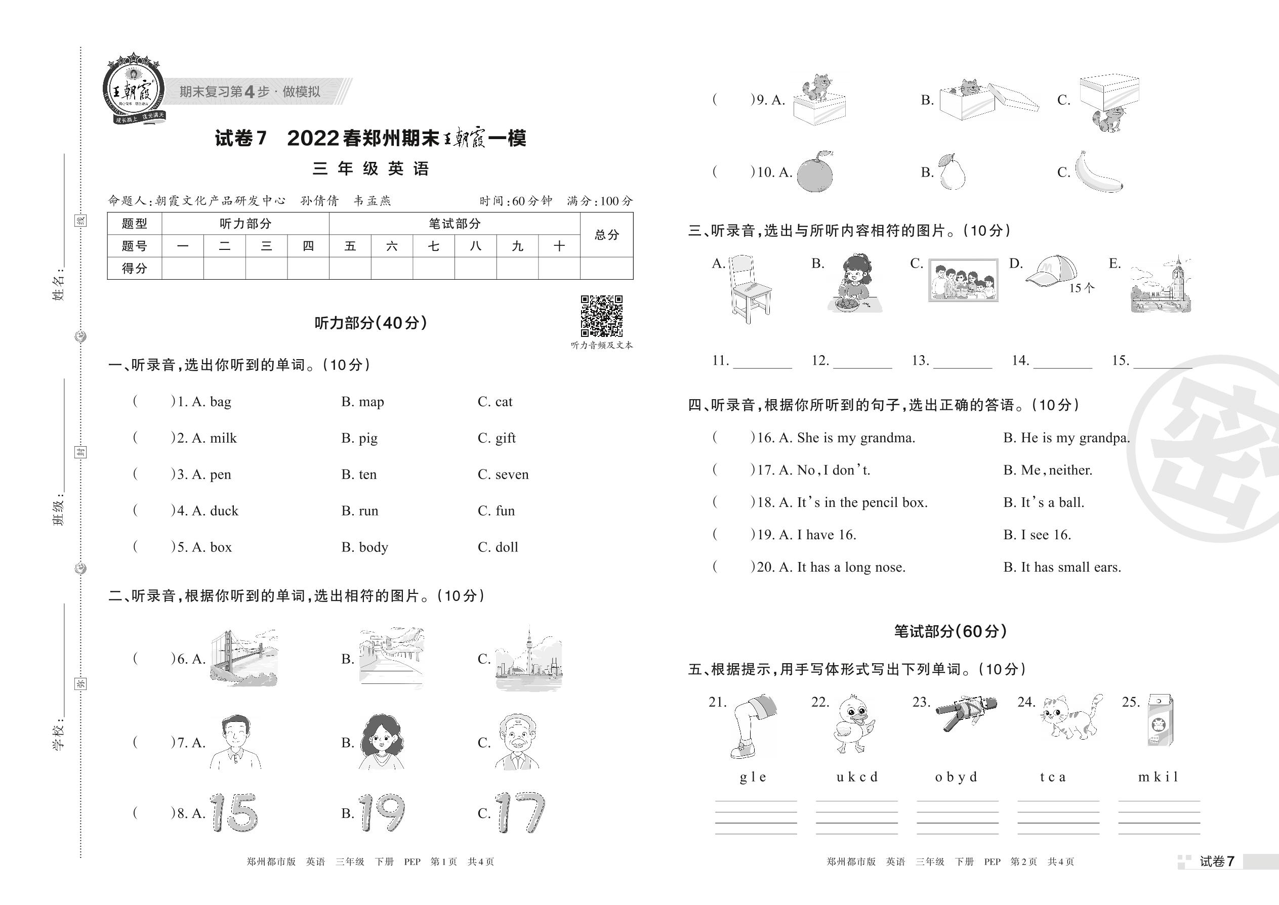 王朝霞期末模拟卷三年级下册英语(PEP版)_R220331101442586【7】