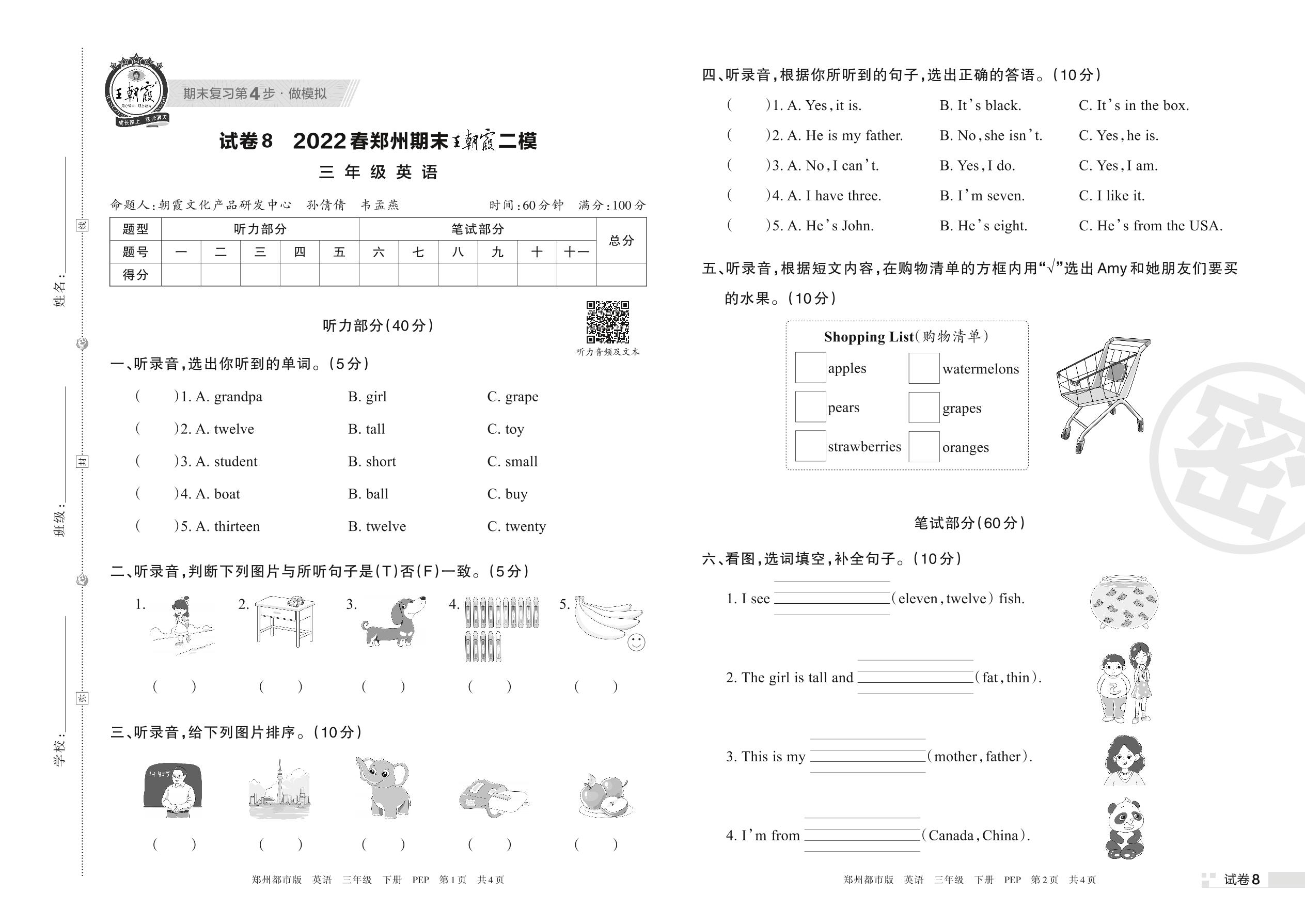 王朝霞期末模拟卷三年级下册英语(PEP版)_R220331101442907【8】
