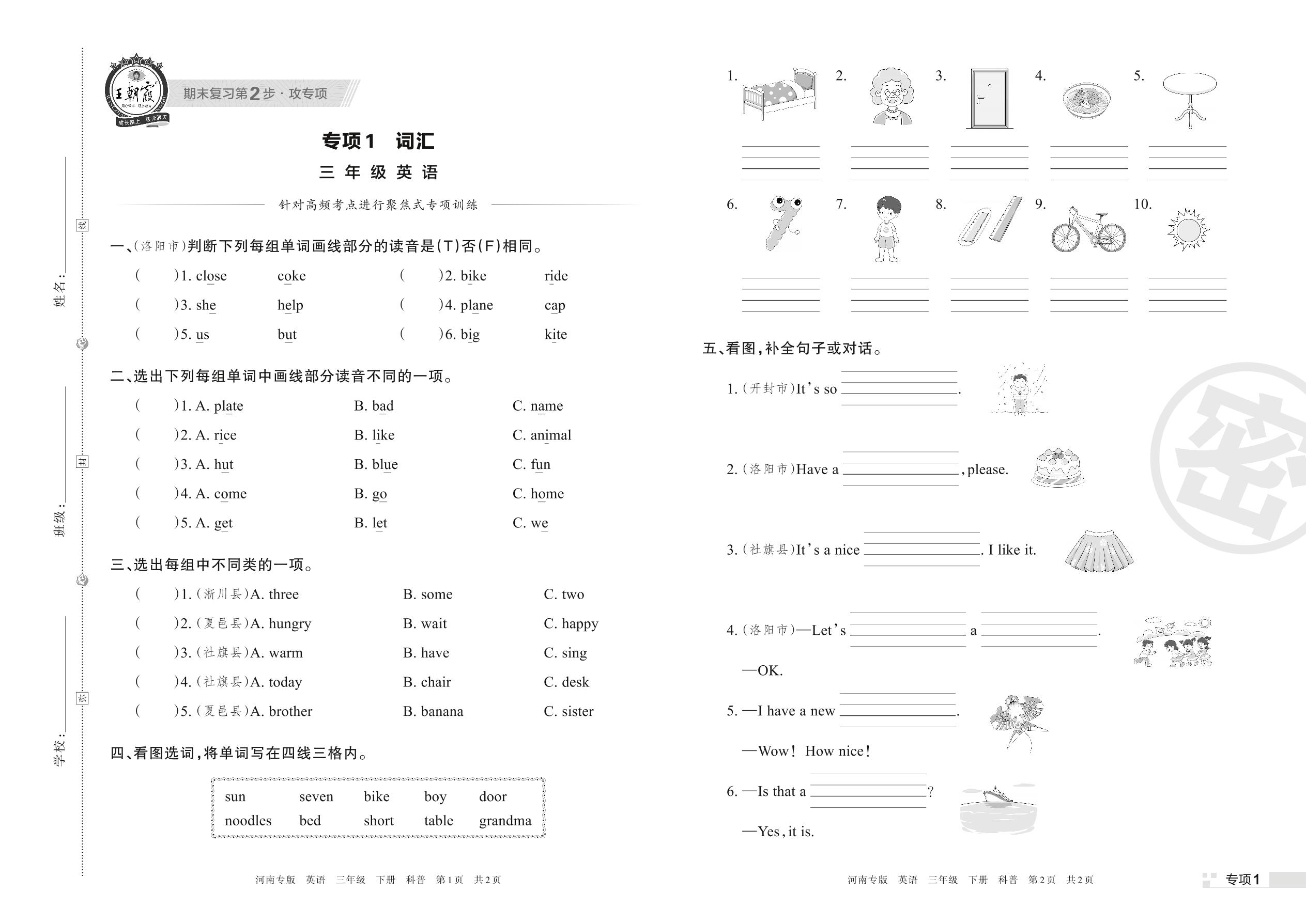 王朝霞期末专项卷——词汇三年级下册英语(科普版)【1】