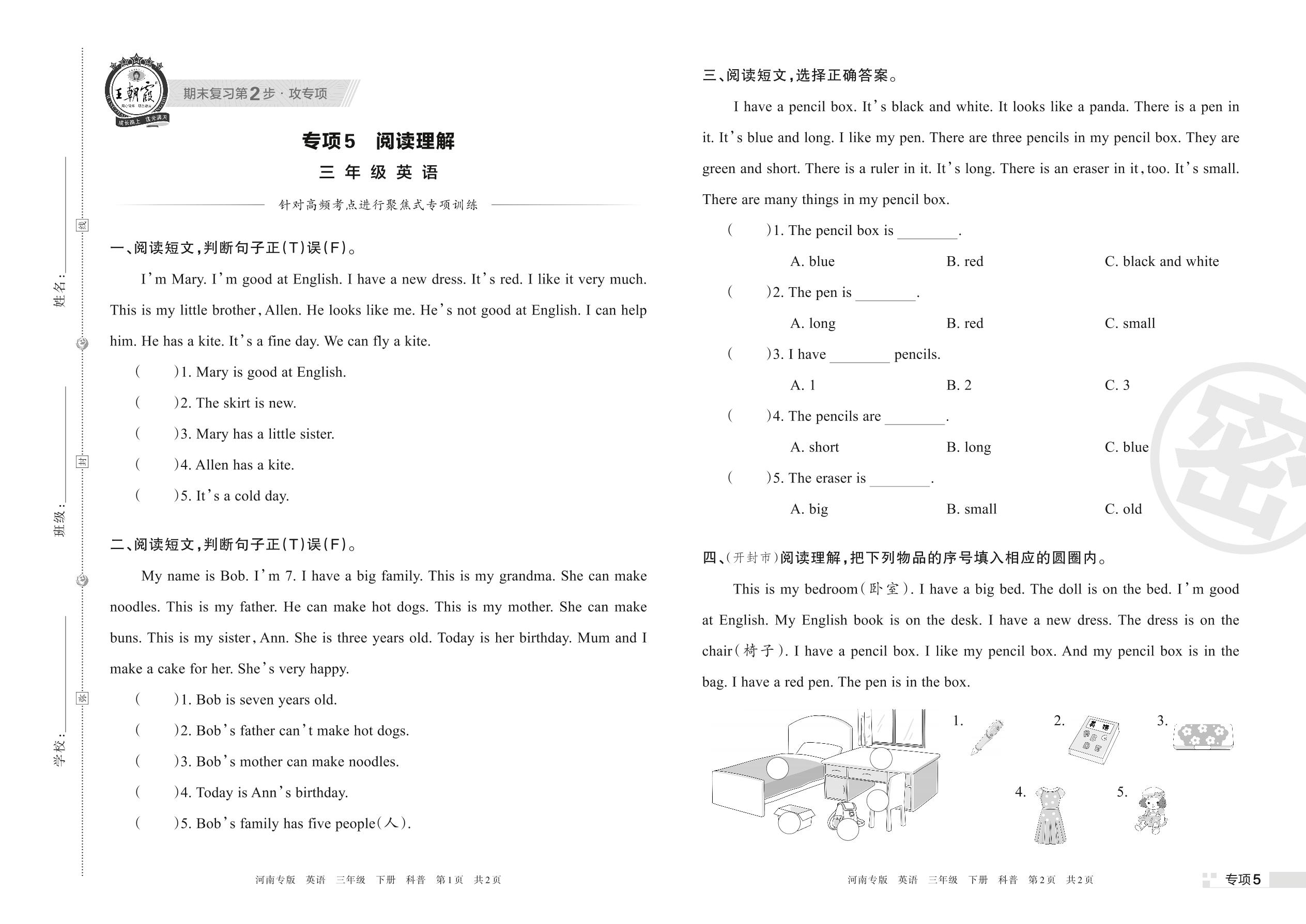 王朝霞期末专项卷——阅读理解三年级下册英语(科普版)【5】