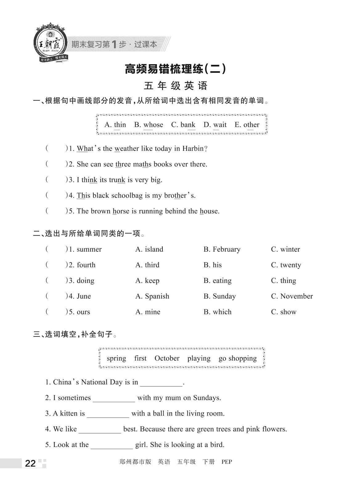 王朝霞期末过课本——高频易错梳理练(二)五年级下册英语(PEP版)_R220331103304818
