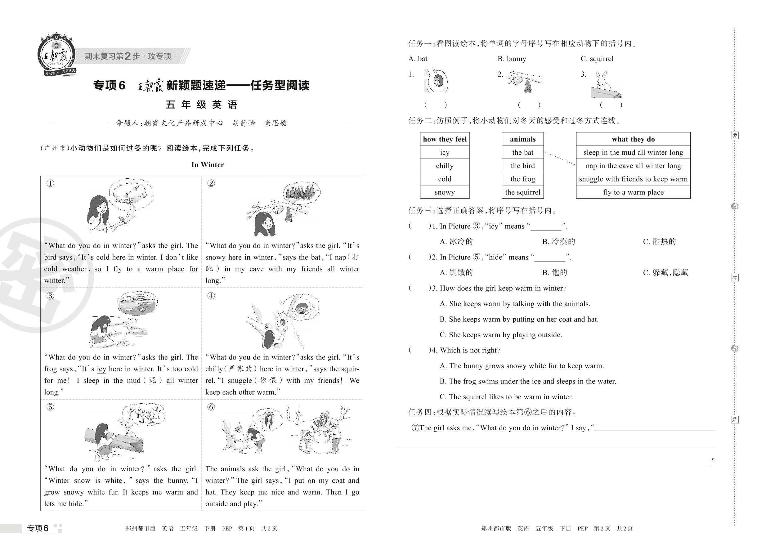 王朝霞期末专项卷——新颖题速递:任务型阅读五年级下册英语(PEP版)【6】_R220331103306