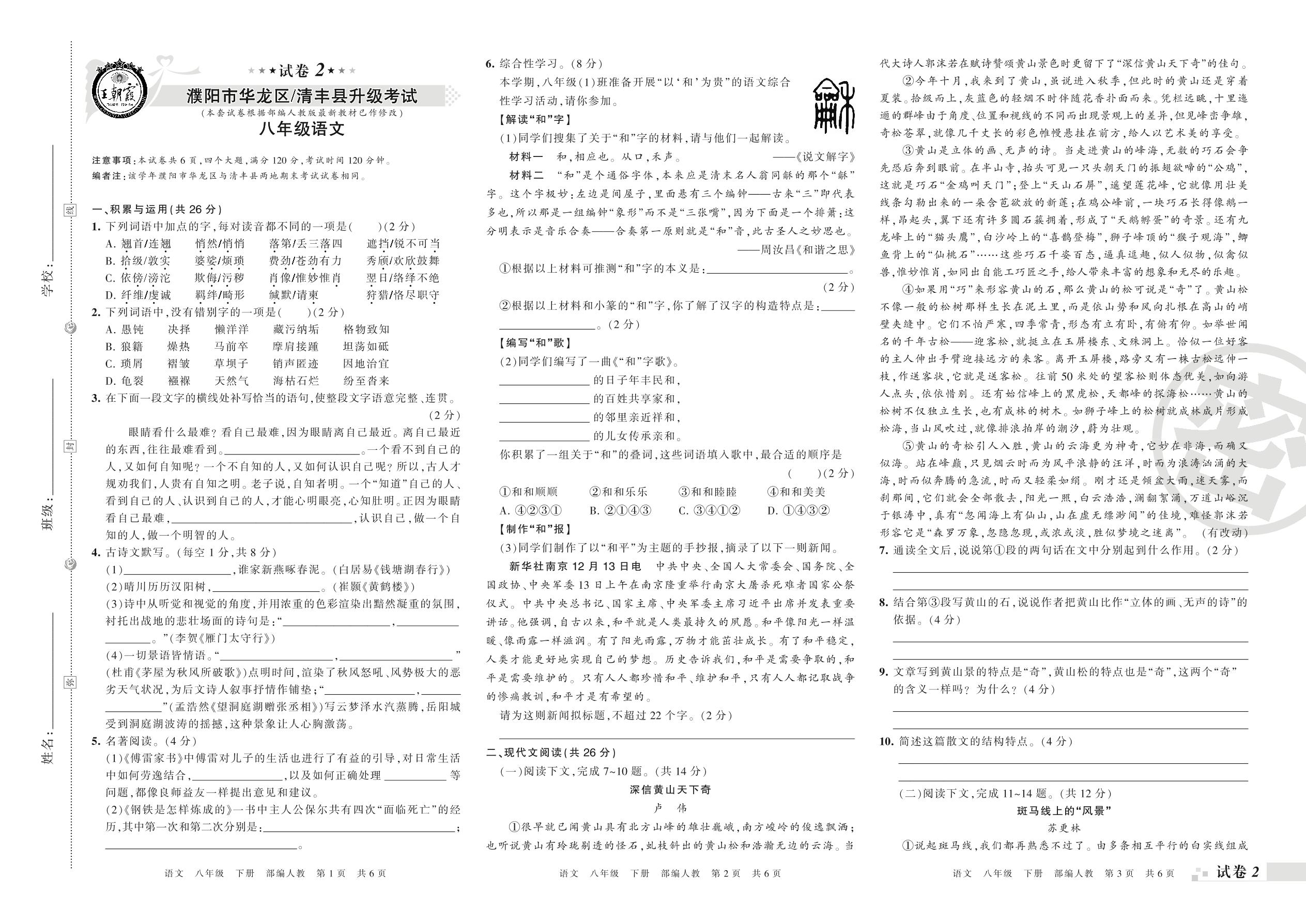 2018-2019学年第二学期濮阳市华龙区、清丰县八年级语文试卷(人教版)【2】