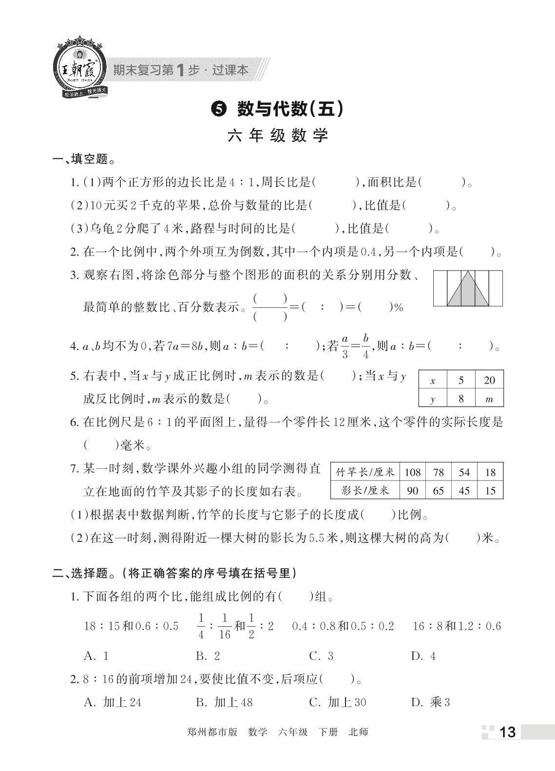王朝霞期末过课本——5 数与代数(五)六年级下册数学(北师版)_R220331104004787