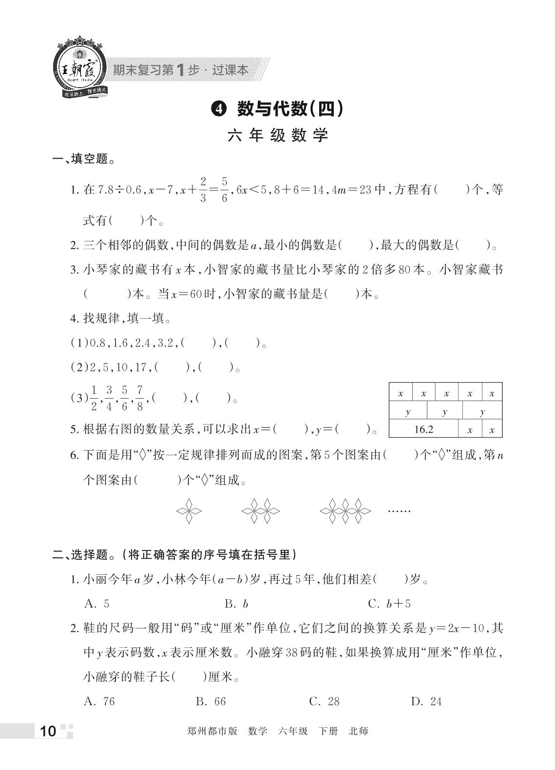 王朝霞期末过课本——4 数与代数(四)六年级下册数学(北师版)_R220331104005279