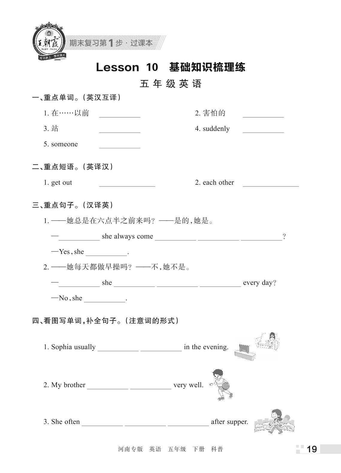 王朝霞期末过课本——Lessons 10 基础知识梳理练五年级下册英语(科普版)