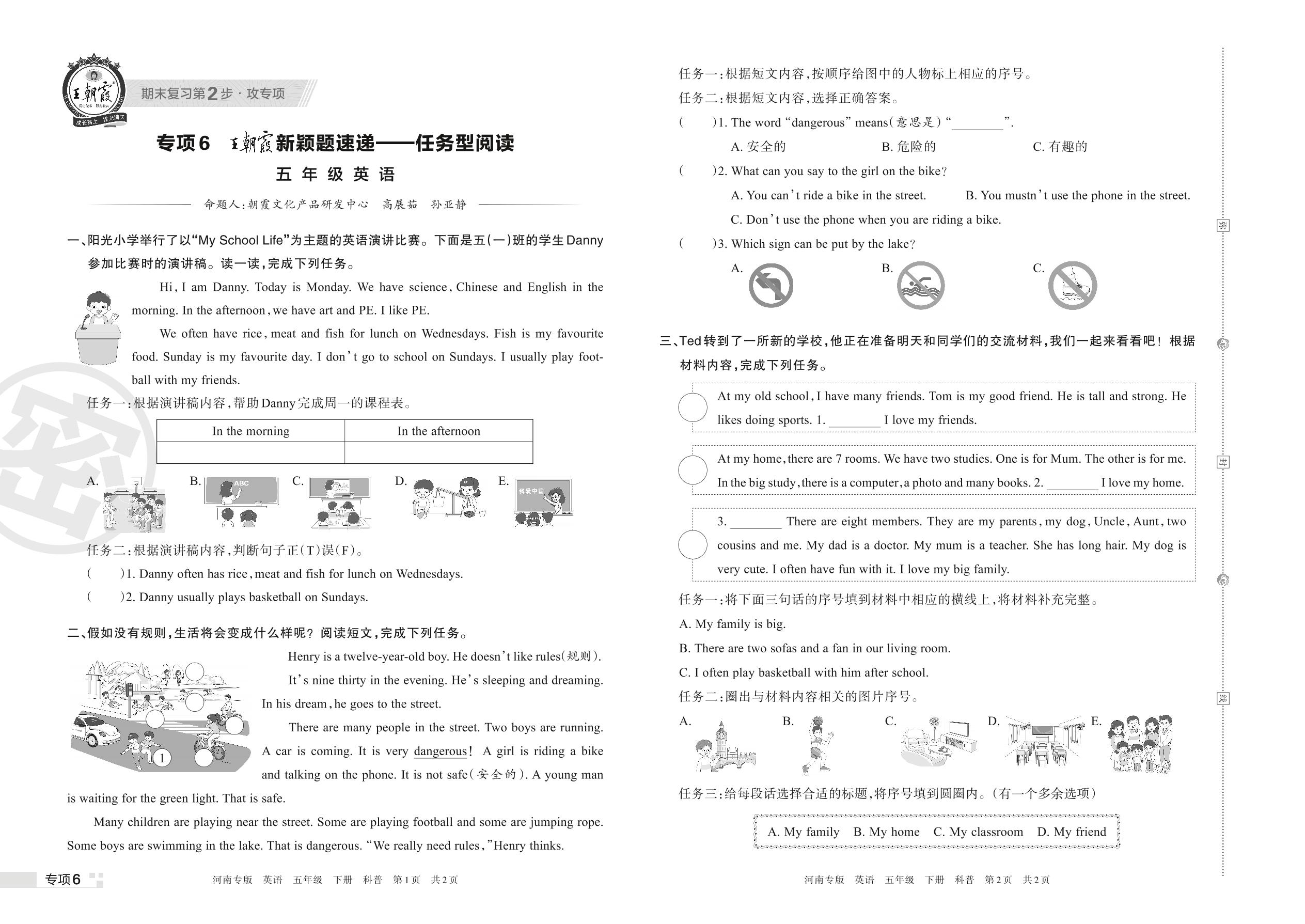 王朝霞期末专项卷——新颖题速递:任务型阅读五年级下册英语(科普版)【6】