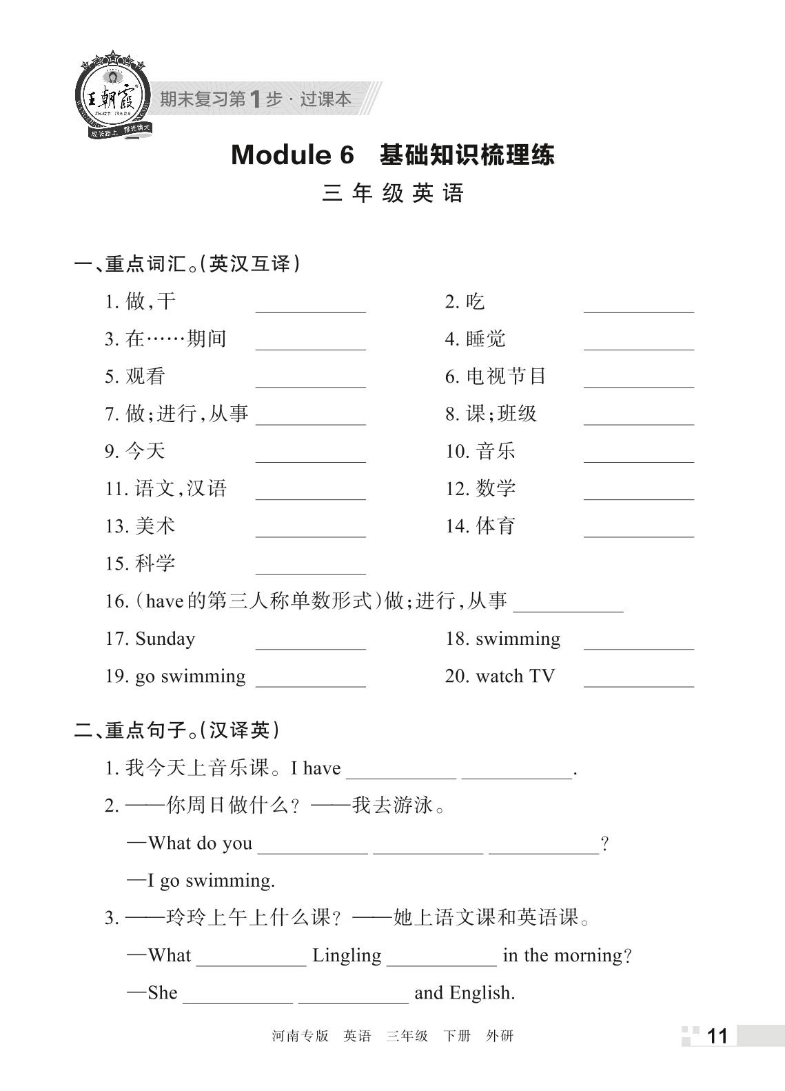 王朝霞期末过课本——Module 6 基础知识梳理练三年级下册英语(外研版)