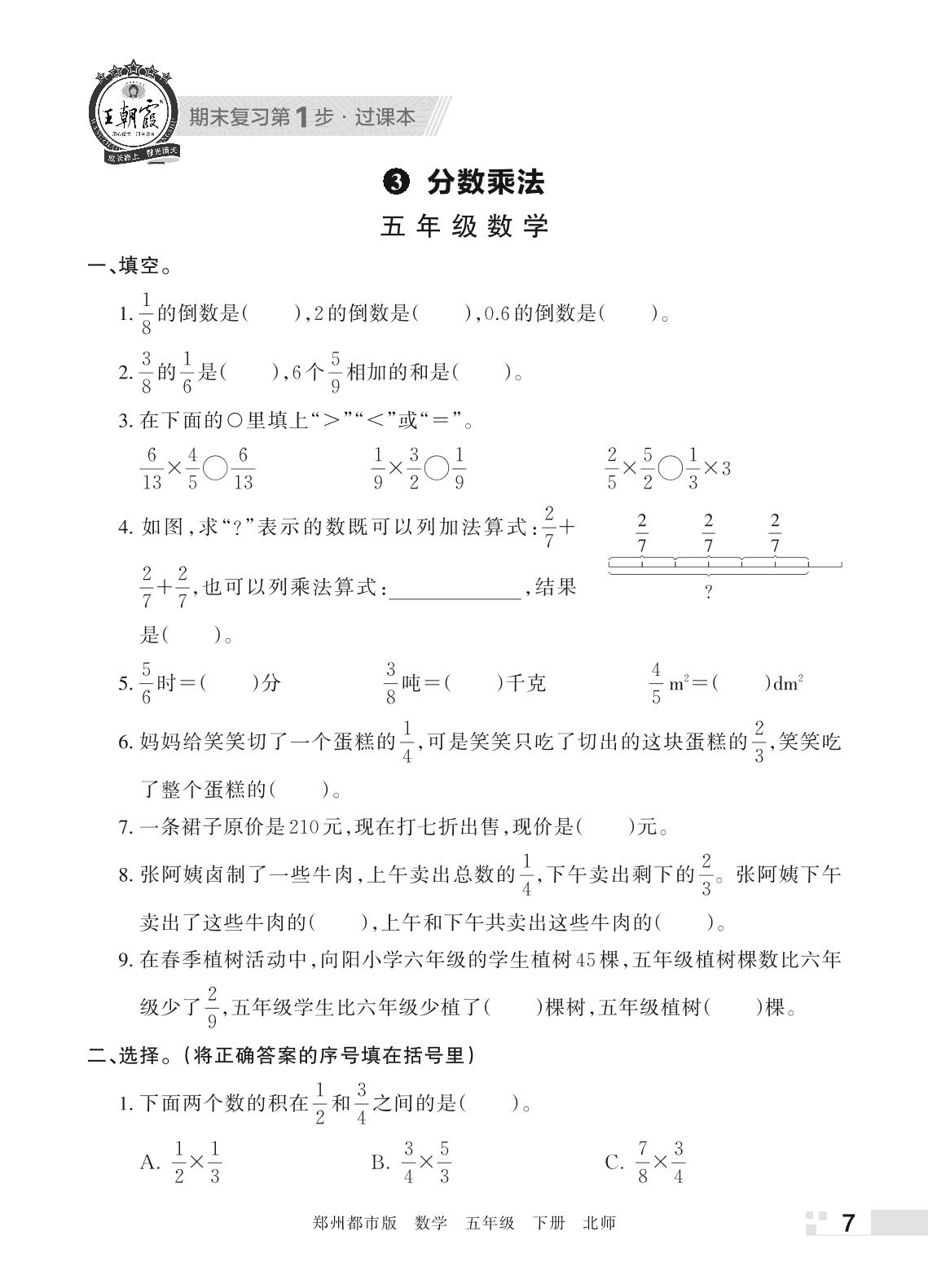 王朝霞期末过课本——3 分数乘法五年级下册数学(北师版)_R220331110816550