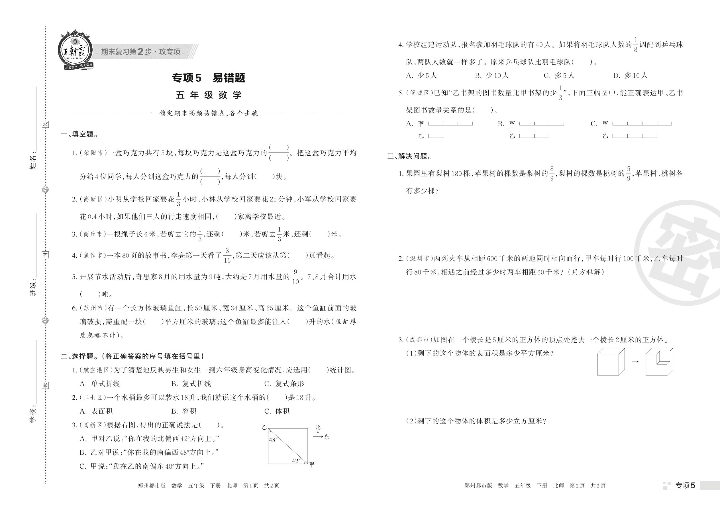 王朝霞期末专项卷——易错题五年级下册数学(北师版)_R220331110818253【5】