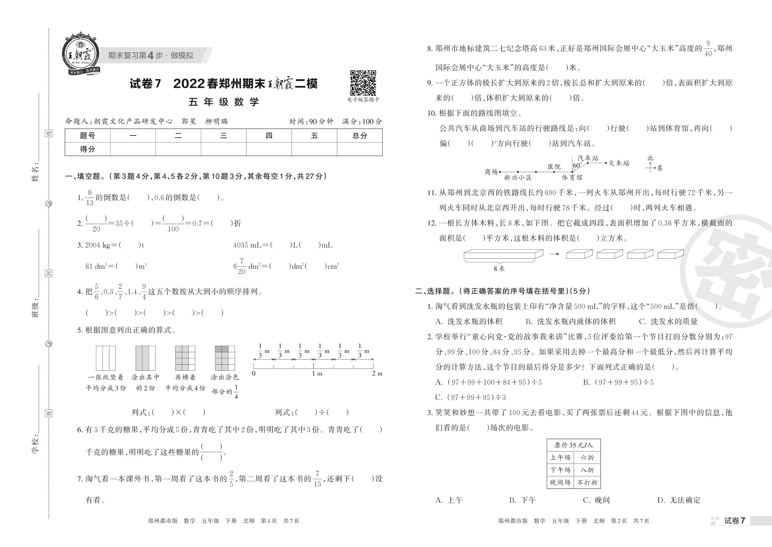 王朝霞期末模拟卷五年级下册数学(北师版)_R220331110819639【7】