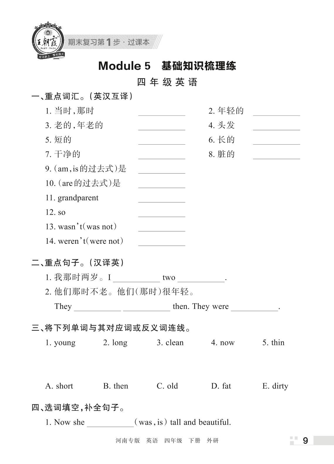 王朝霞期末过课本——Module 5 基础知识梳理练四年级下册英语(外研版)