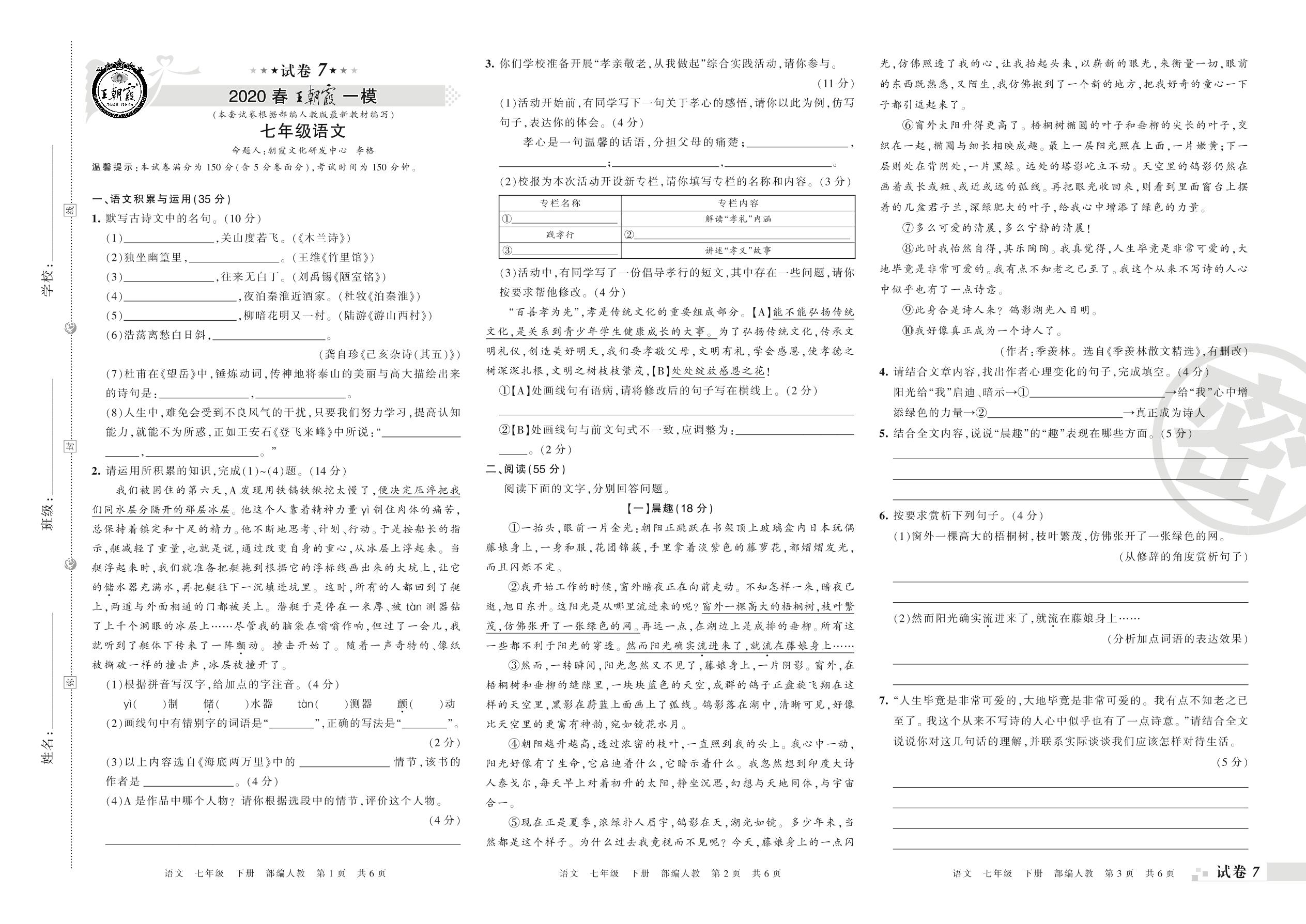 王朝霞期末模拟卷七年级下册语文(人教版)_R21080220115【7】