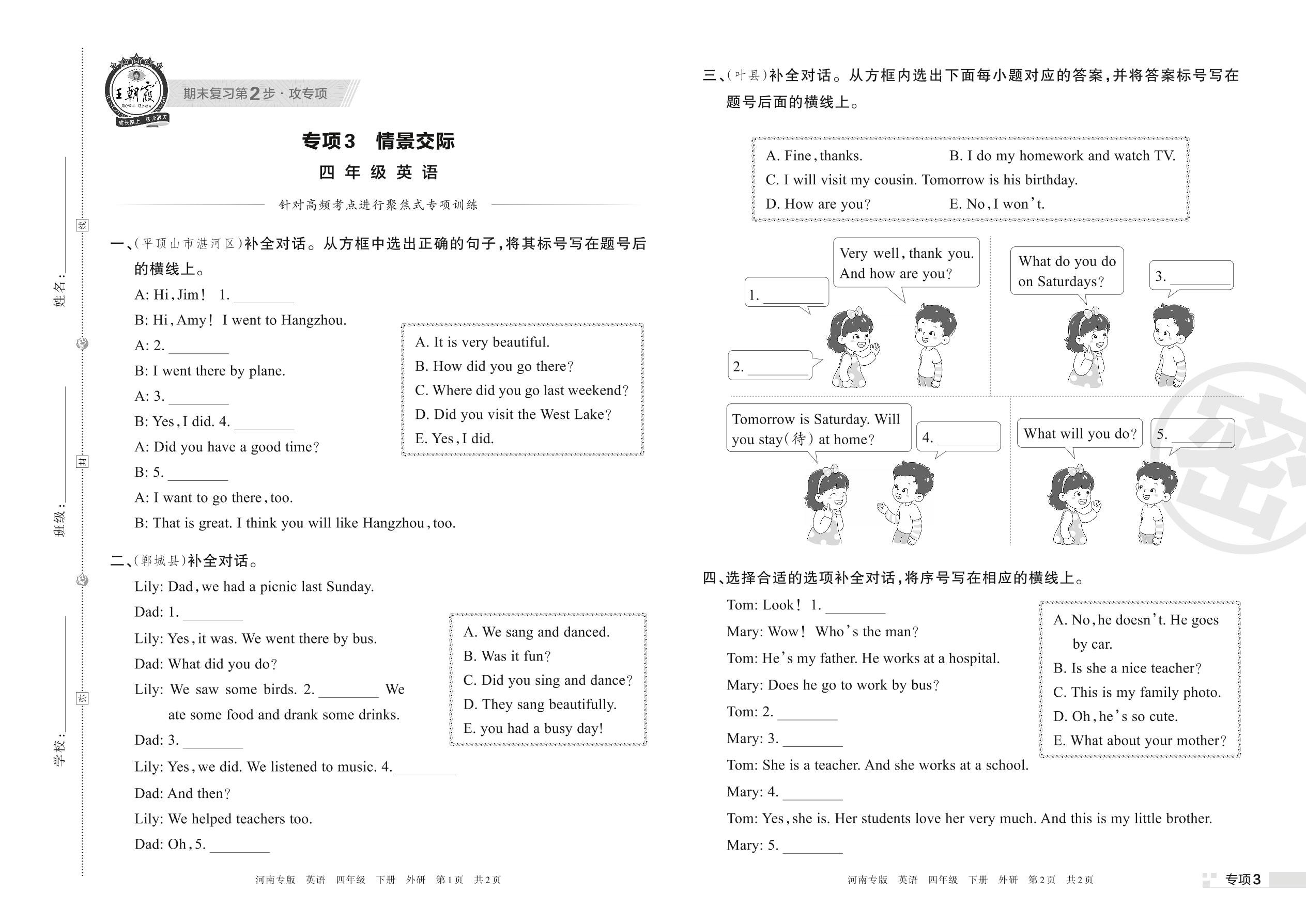 王朝霞期末专项卷——情景交际四年级下册英语(外研版)【3】