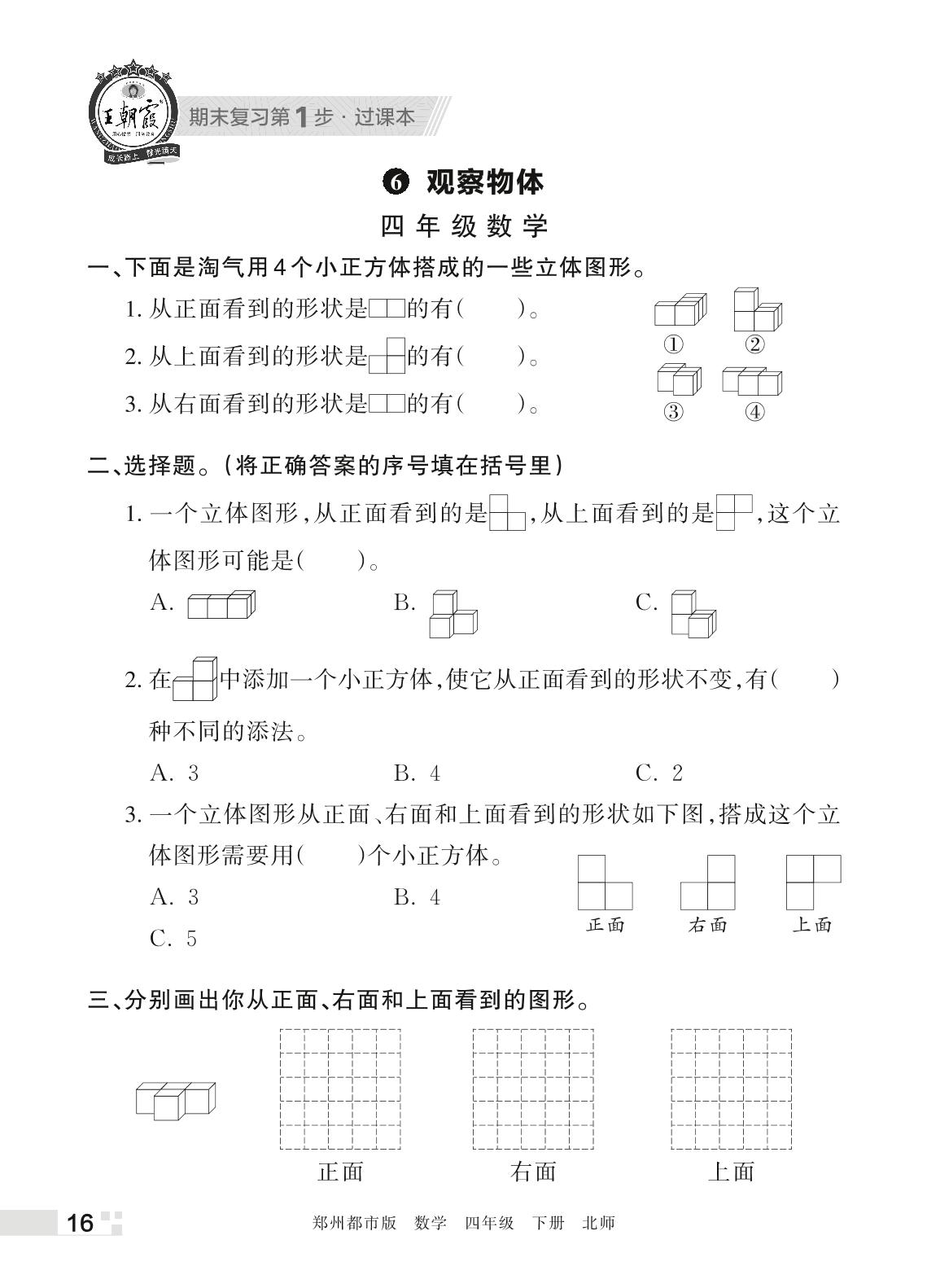 王朝霞期末过课本——6 观察物体四年级下册数学(北师版)_R220331111418803