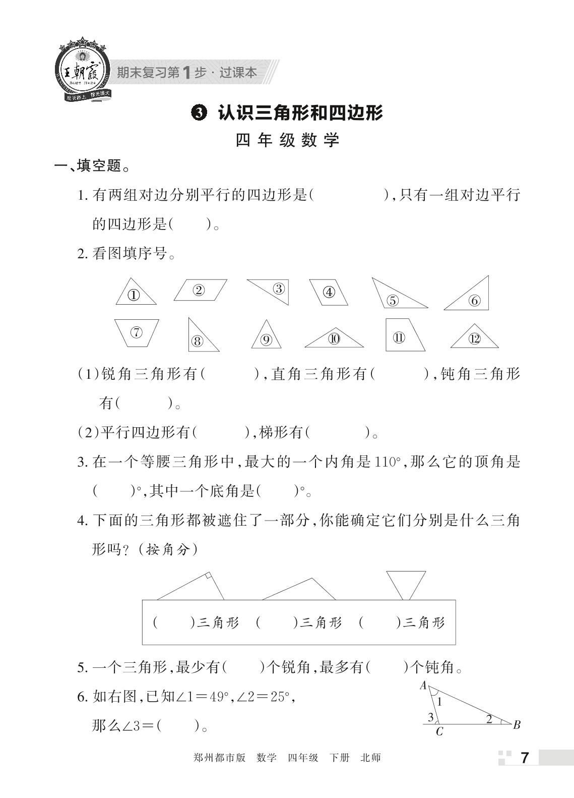 王朝霞期末过课本——3 认识三角形和四边形四年级下册数学(北师版)_R220331111418999