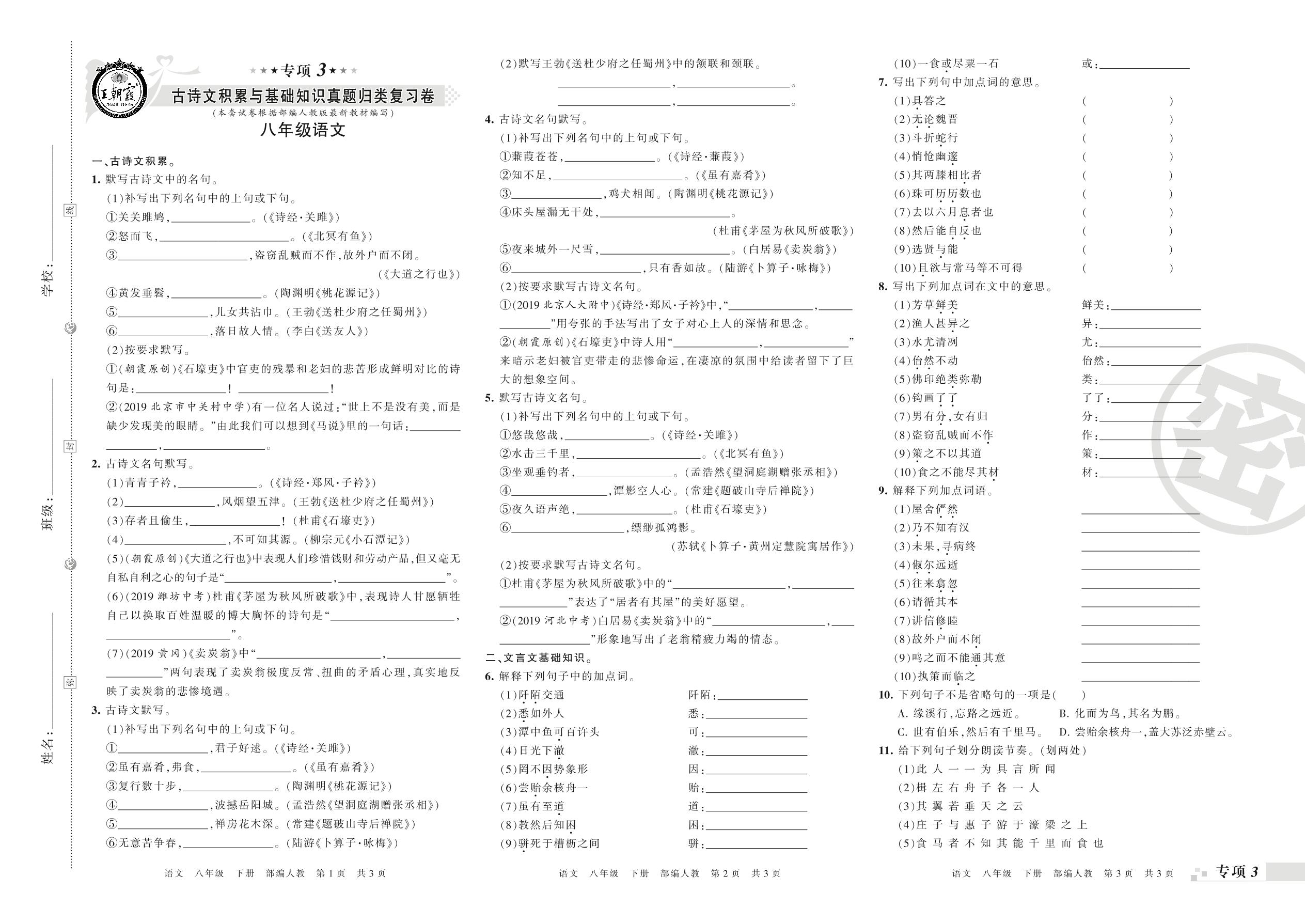 王朝霞期末专项卷——古诗文积累与基础知识、文言文阅读真题归类复习卷八年级下册语文(人教版)_R21080220205【0】
