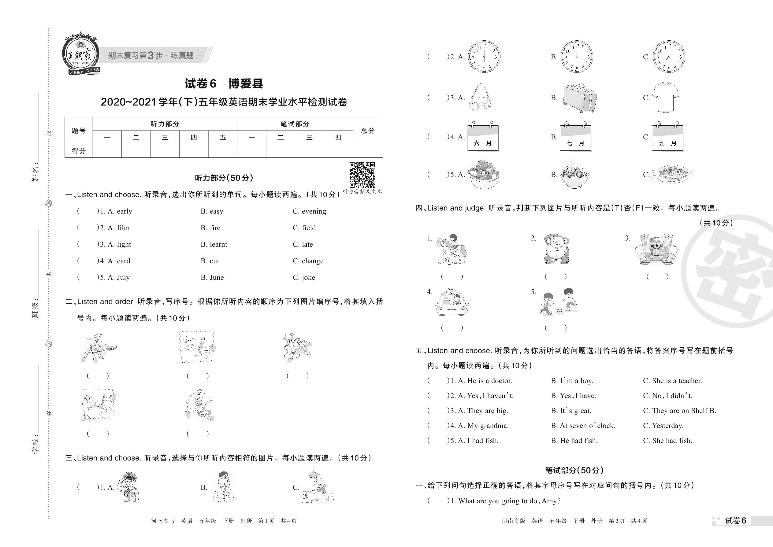 博爱县2020~2021学年(下)五年级英语期末学业水平检测试卷(外研版)【6】