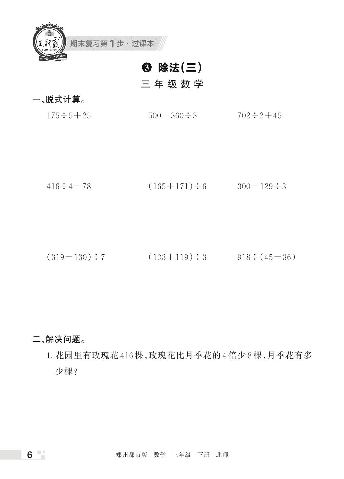 王朝霞期末过课本——3 除法(三)三年级下册数学(北师版)_R220331112233197
