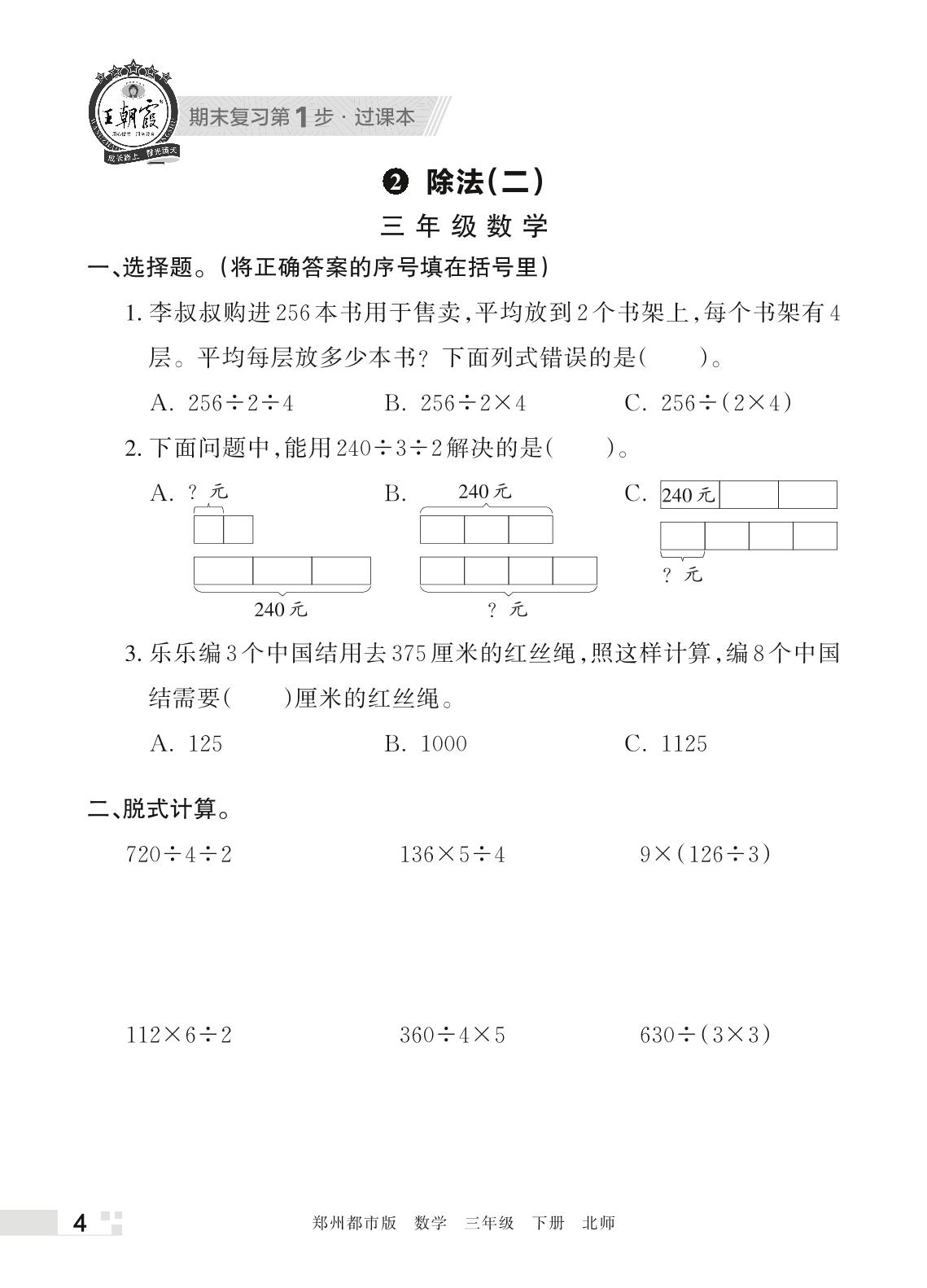 王朝霞期末过课本——2 除法(二)三年级下册数学(北师版)_R220331112233356
