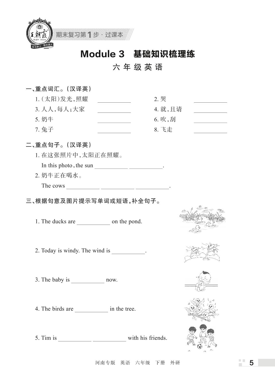 王朝霞期末过课本——Module 3 基础知识梳理练六年级下册英语(外研版)