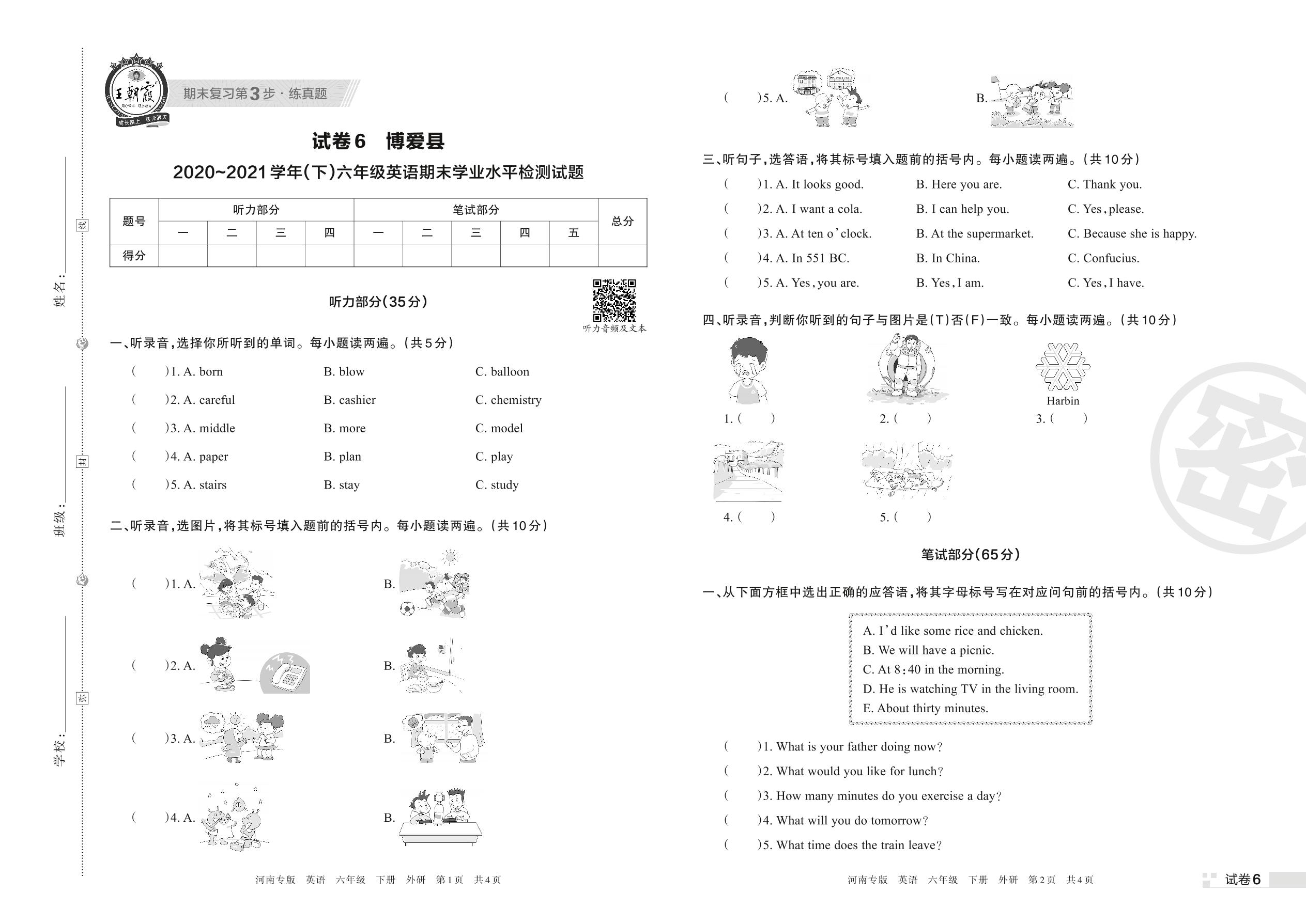 博爱县2020~2021学年(下)六年级英语期末学业水平检测试题(外研版)【6】