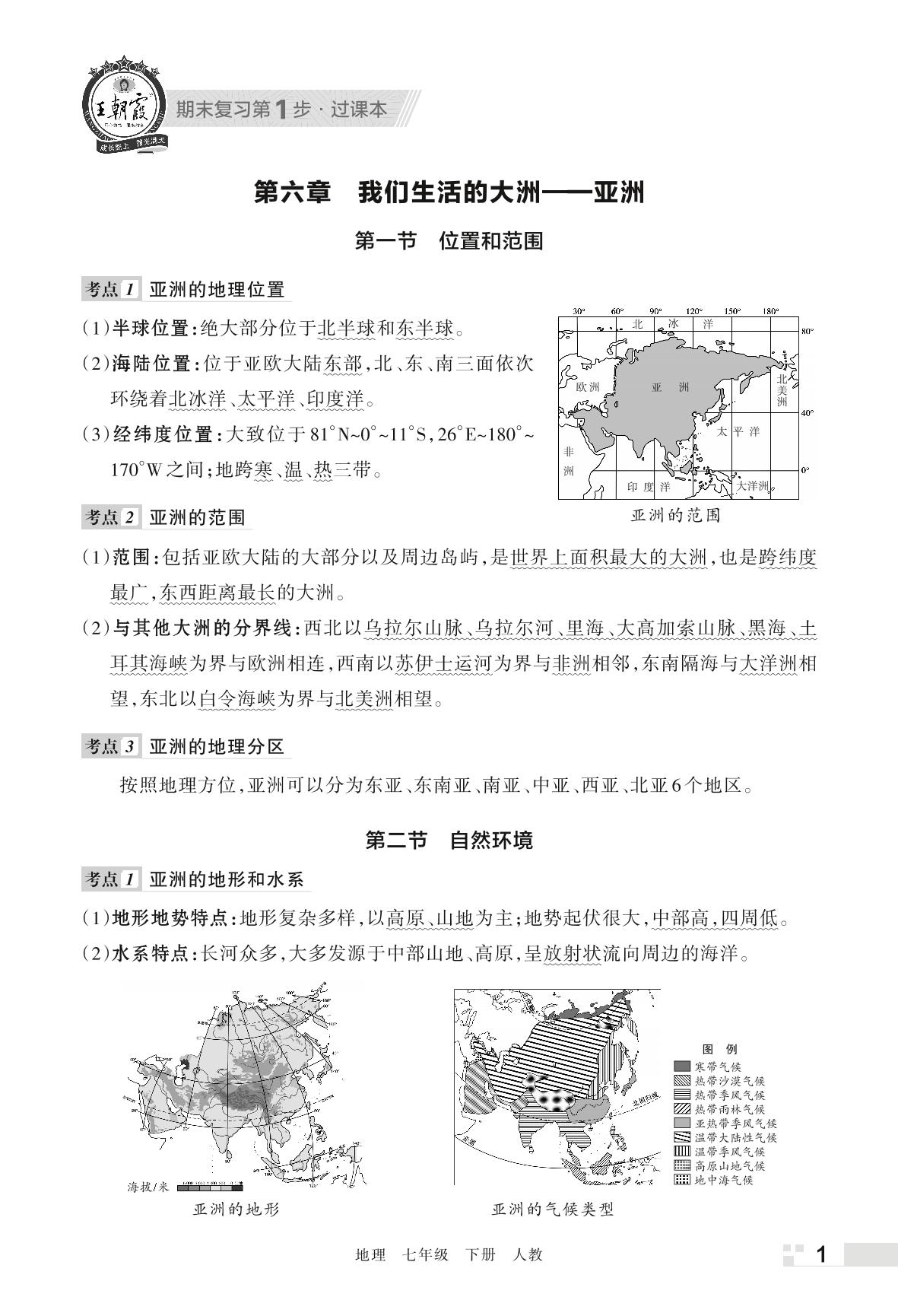 王朝霞期末过课本——基础知识梳理七年级下册地理(人教版)
