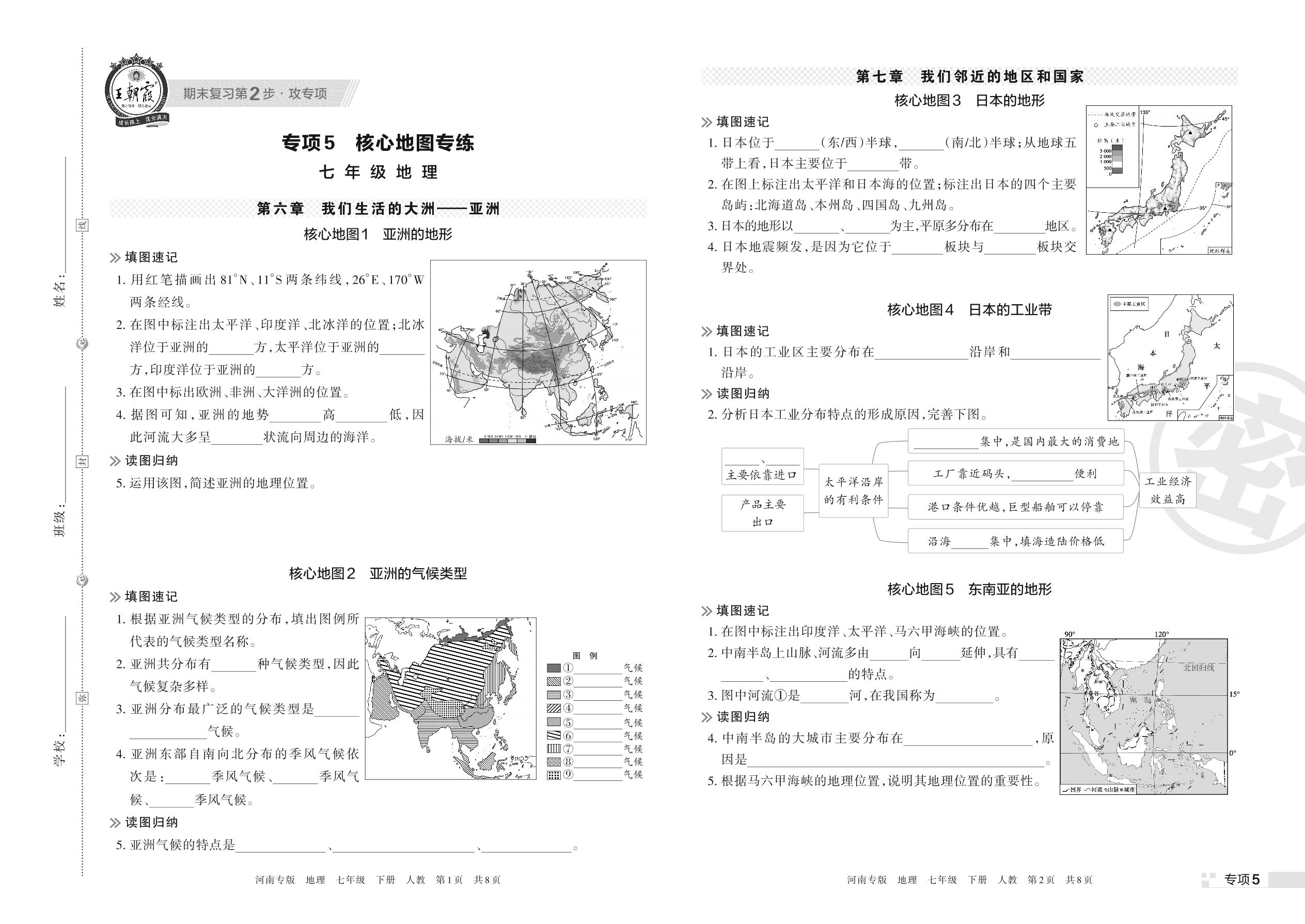 王朝霞期末专项卷——核心地图专练七年级下册地理(人教版)【5】