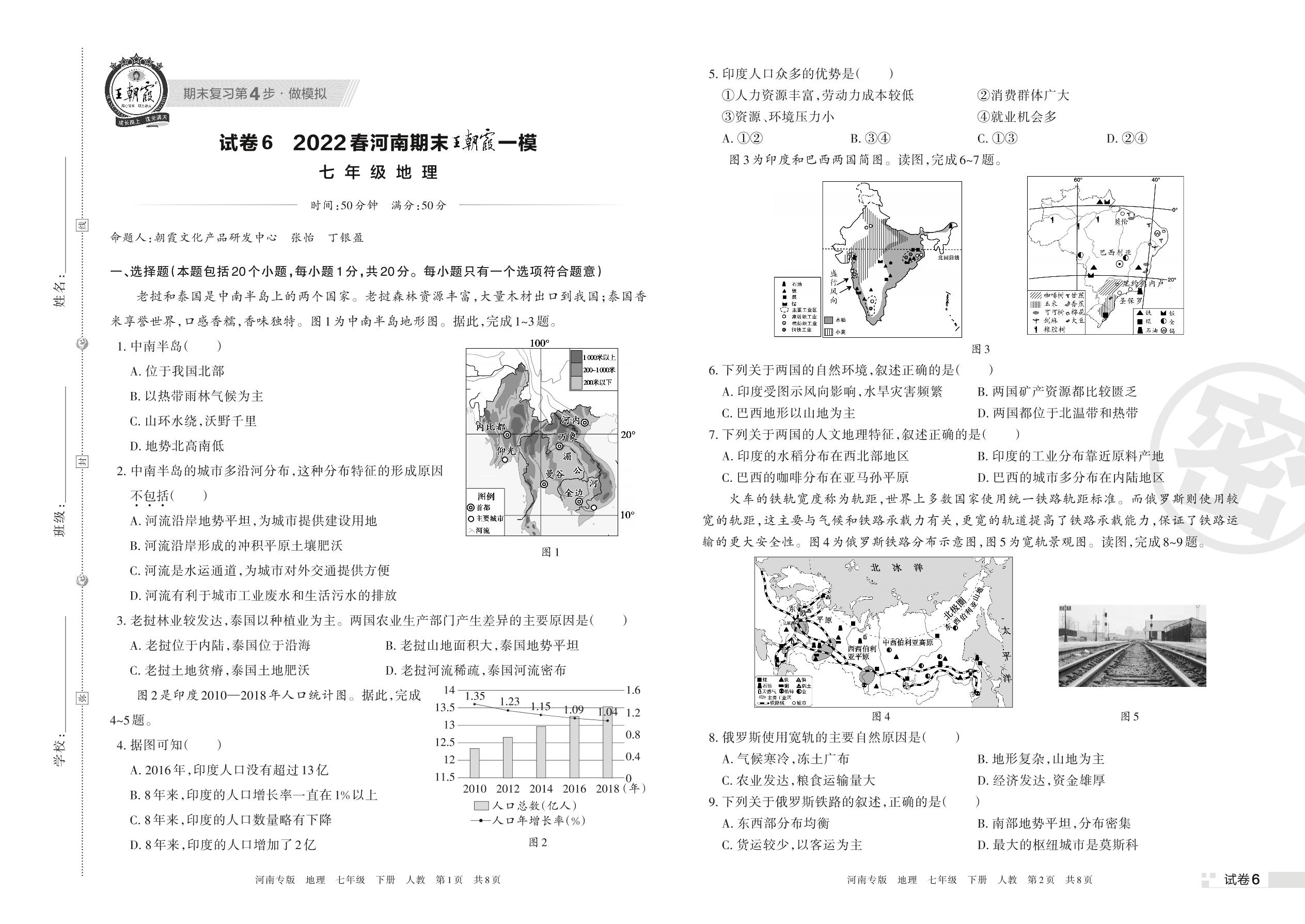 王朝霞期末模拟卷七年级下册地理(人教版)【6】