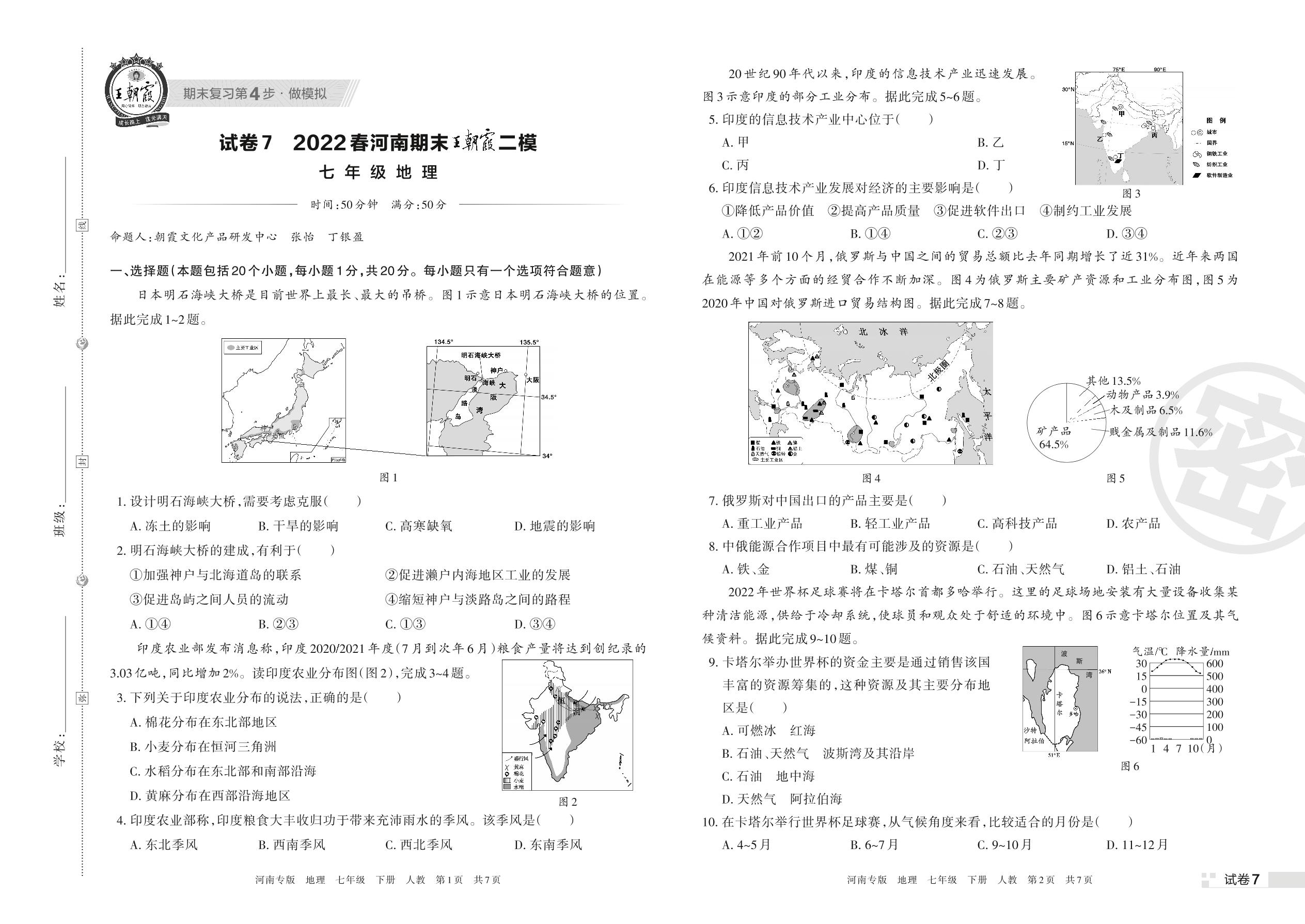 王朝霞期末模拟卷七年级下册地理(人教版)【7】