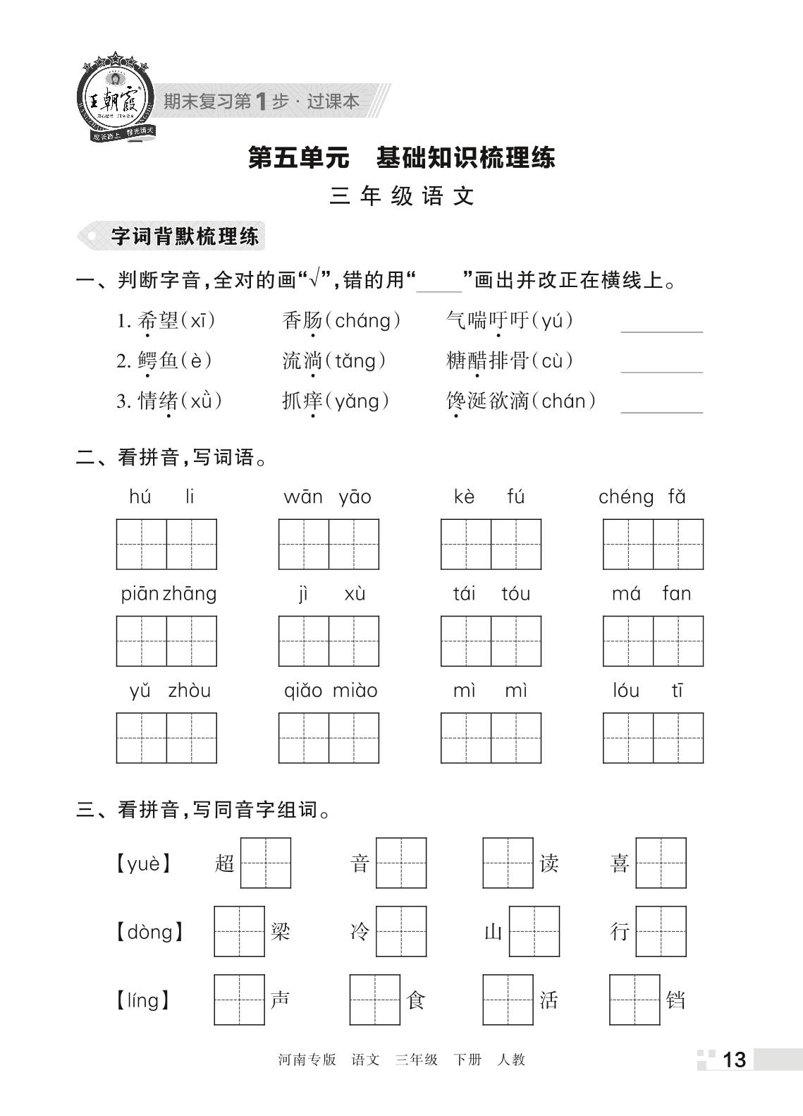 王朝霞期末过课本——第五单元 基础知识梳理练三年级下册语文(人教版)_R220331134143564