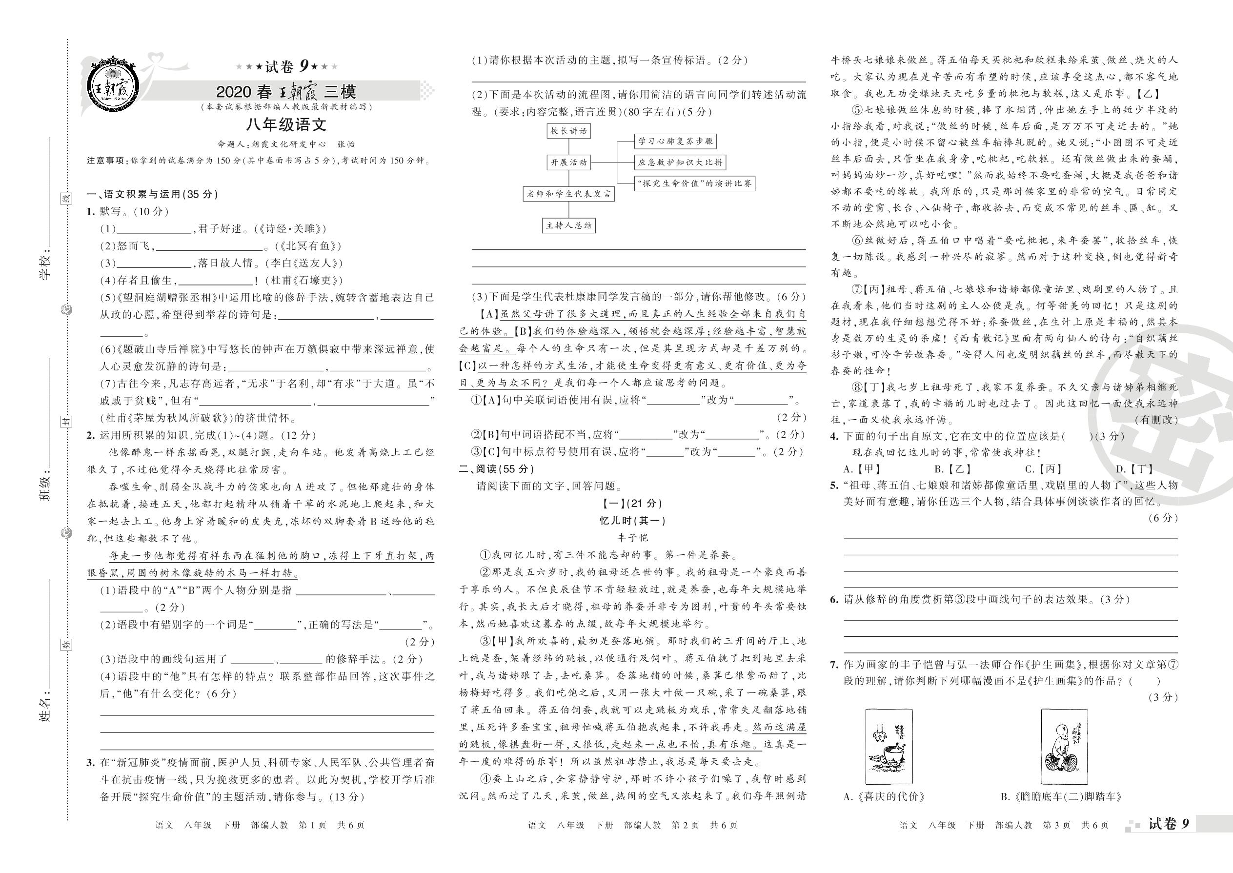 王朝霞期末模拟卷八年级下册语文(人教版)_R21080220323【9】