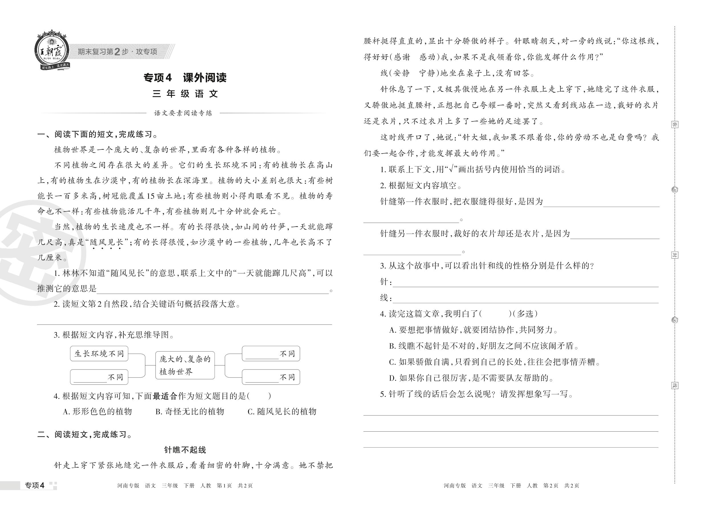 王朝霞期末专项卷——课外阅读三年级下册语文(人教版)_R220331134143491【4】