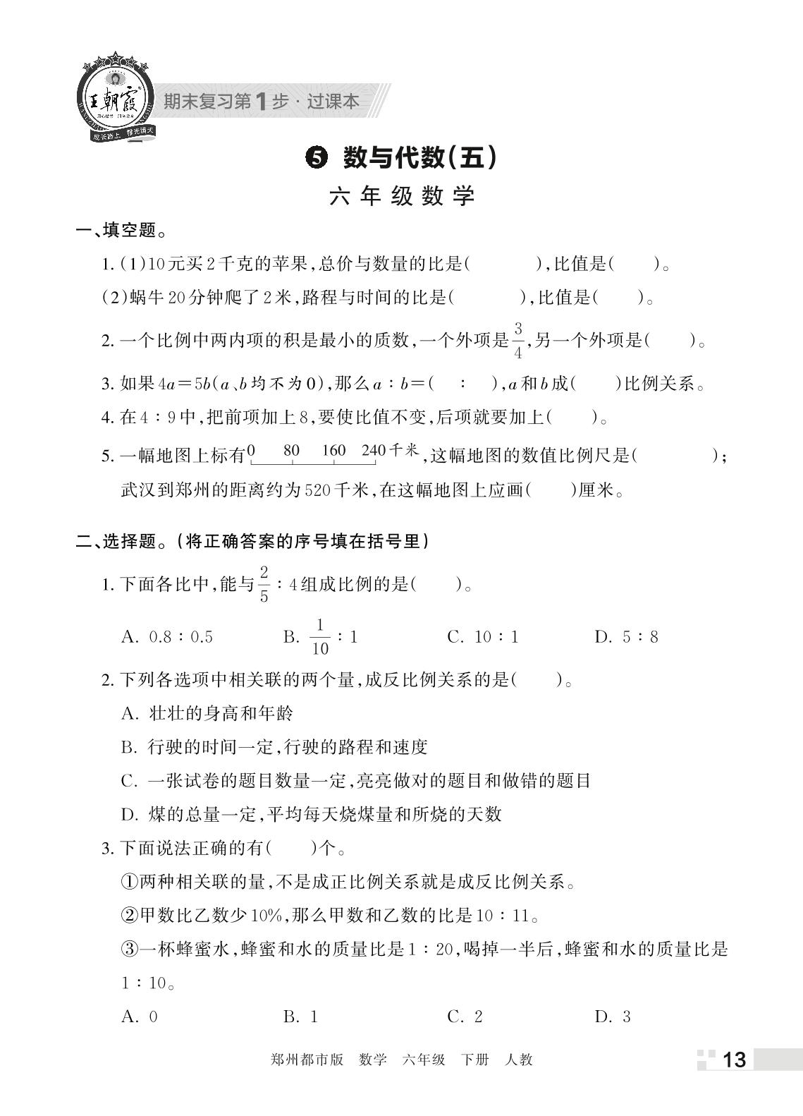 王朝霞期末过课本——5 数与代数(五)六年级下册数学(人教版)_R220331134931115