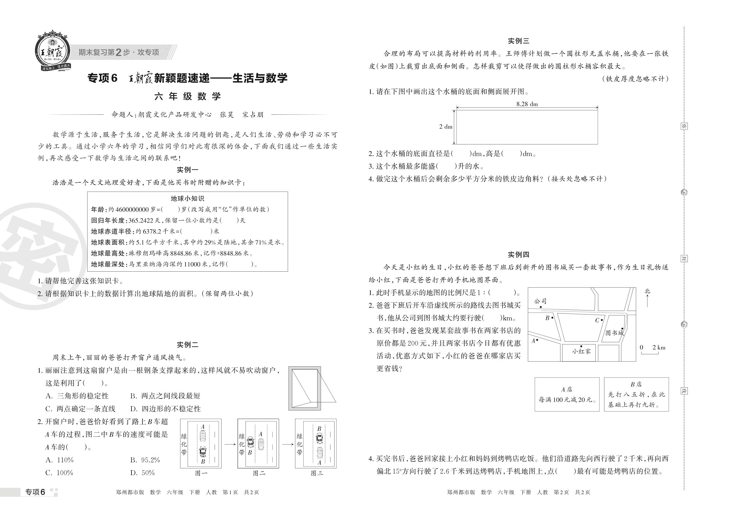 王朝霞期末专项卷——新颖题速递:生活与数学六年级下册数学(人教版)_R220331134932164【6】