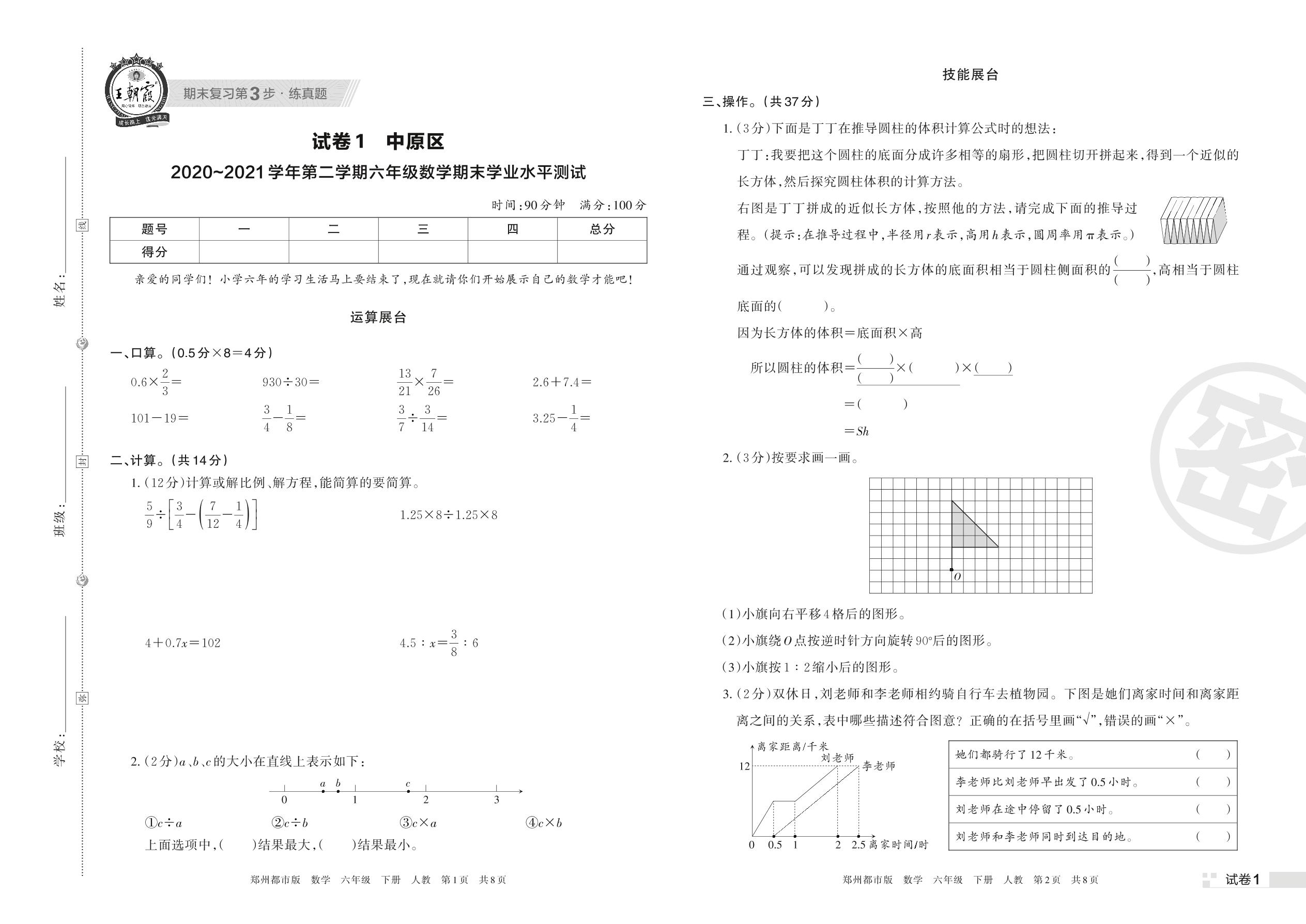 中原区2020~2021学年第二学期六年级数学期末学业水平测试(人教版)【1】