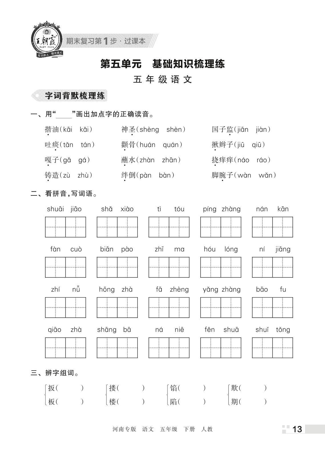 王朝霞期末过课本——第五单元 基础知识梳理练五年级下册语文(人教版)_R220331135503537