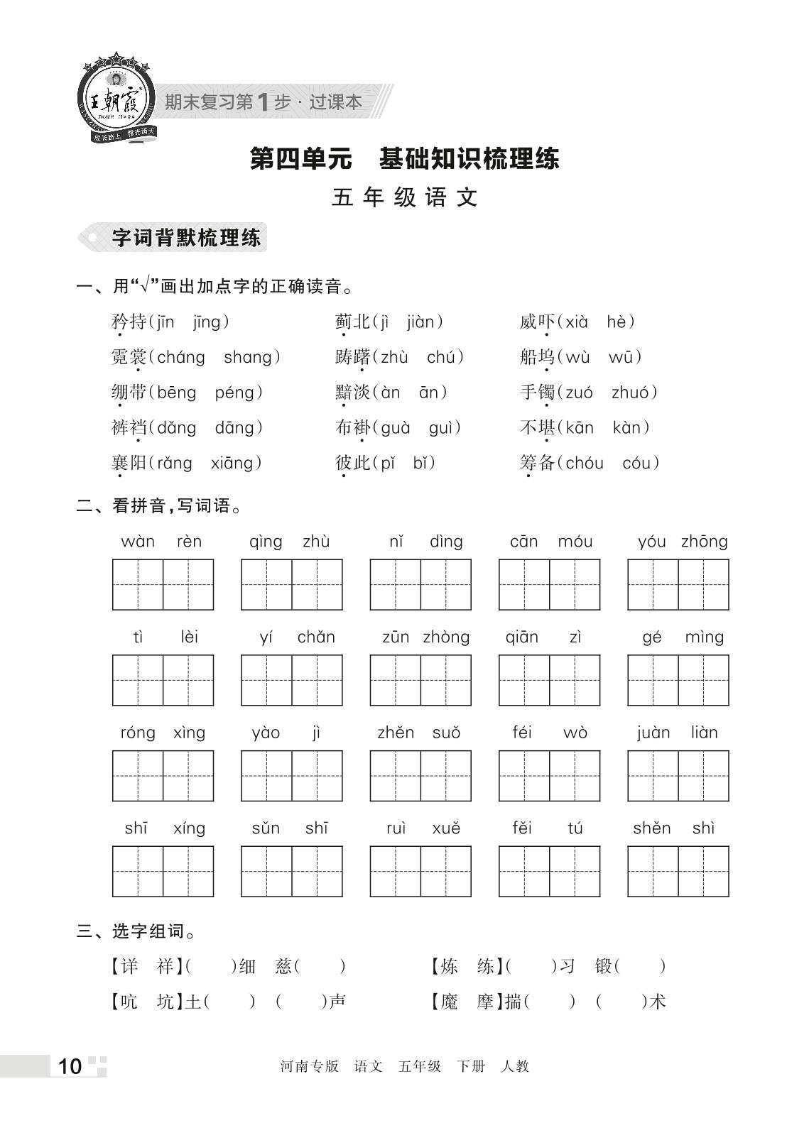 王朝霞期末过课本——第四单元 基础知识梳理练五年级下册语文(人教版)_R220331135503267