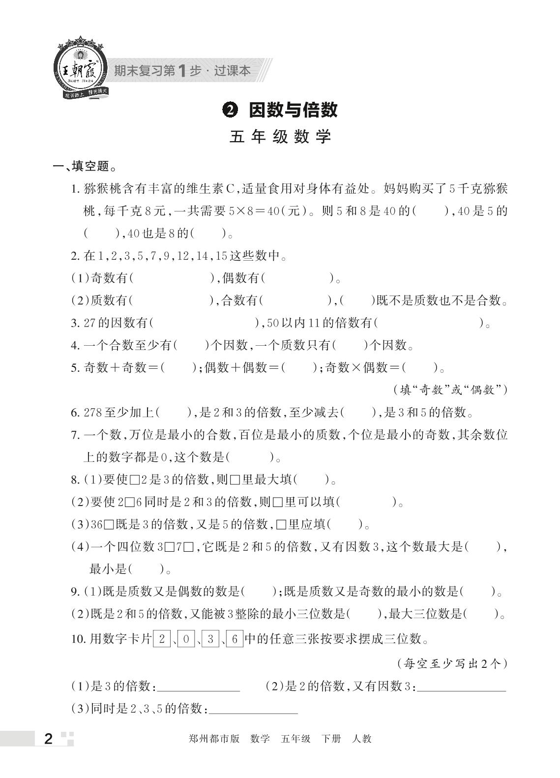 王朝霞期末过课本——2 因数与倍数五年级下册数学(人教版)_R220331135856078