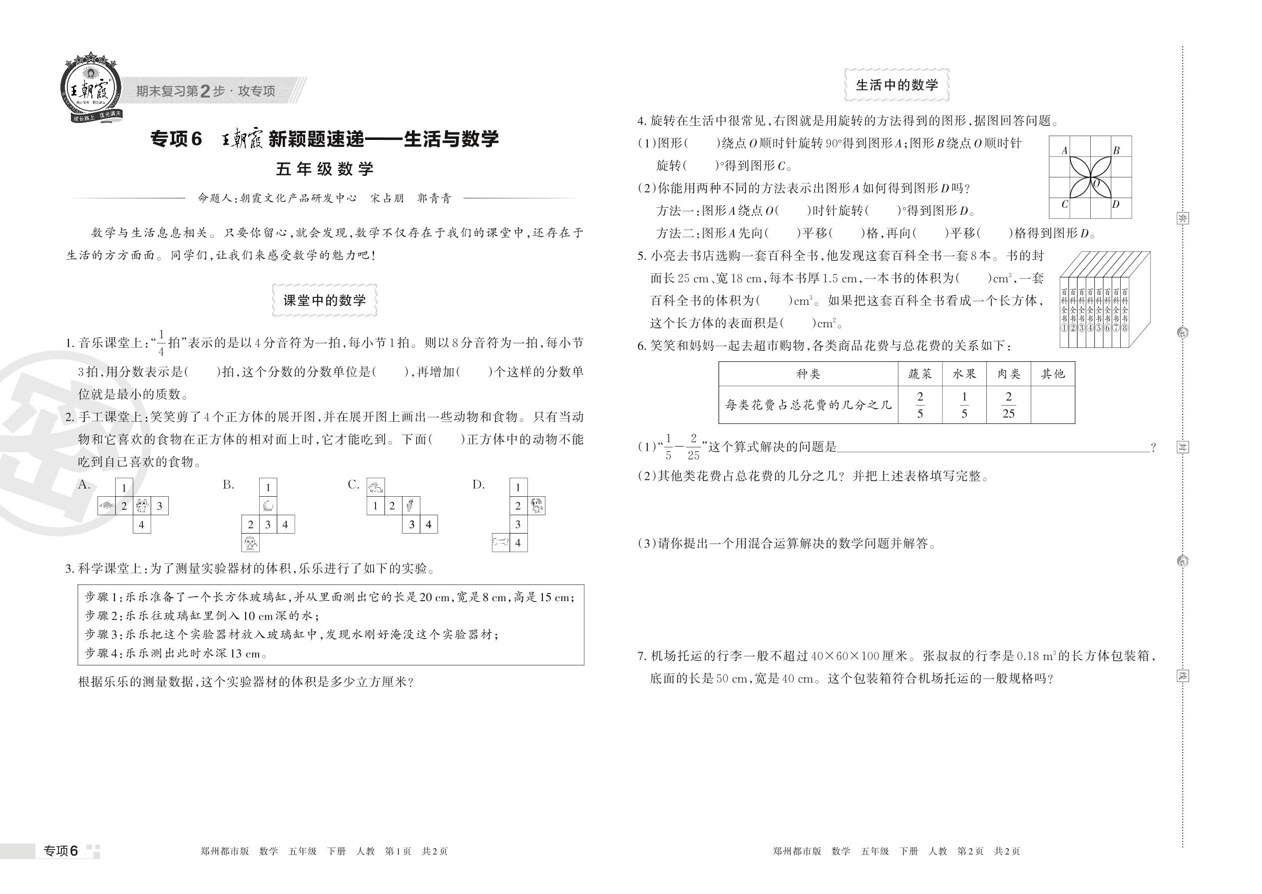 王朝霞期末专项卷——新颖题速递:生活与数学五年级下册数学(人教版)_R220331135857861【6】