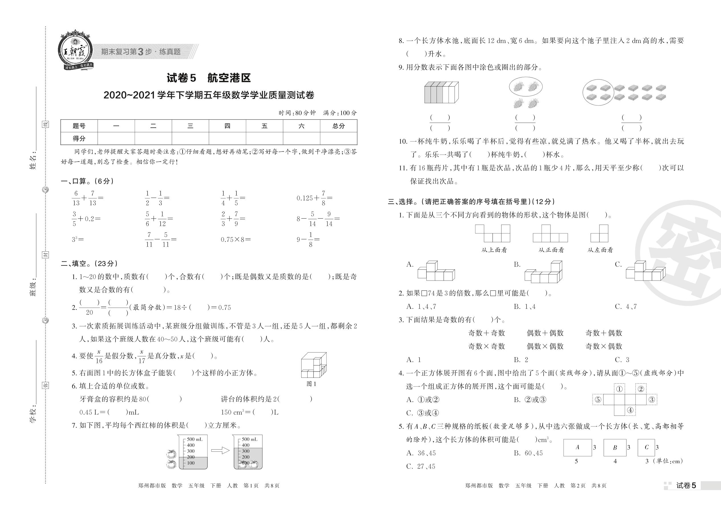 五年级数学人教版下册期末卷