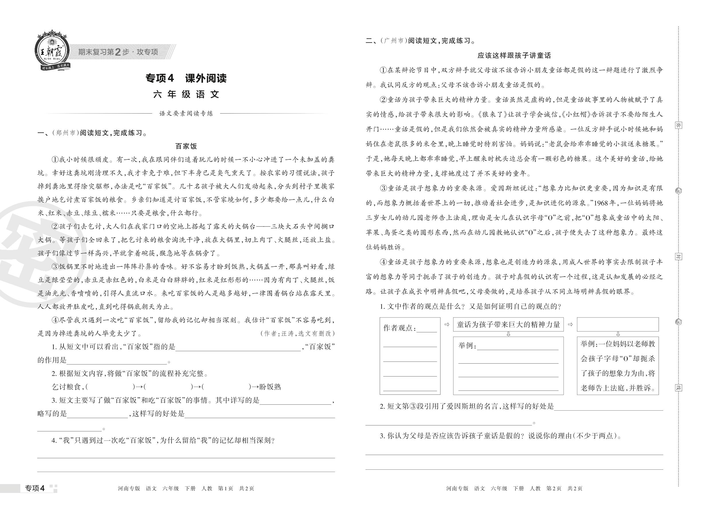 王朝霞期末专项卷——课外阅读六年级下册语文(人教版)_R220331140034538【4】