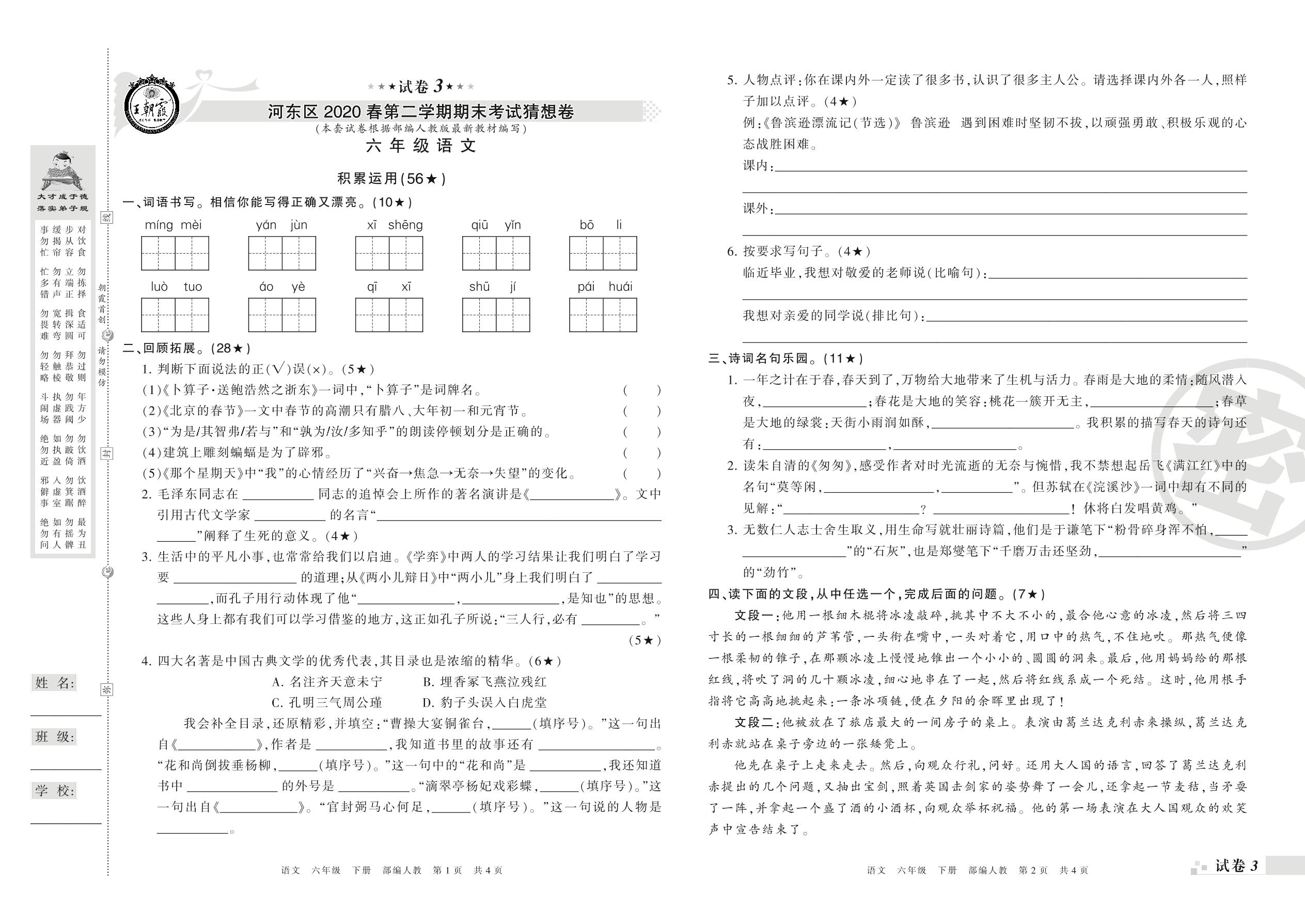 2018-2019学年第二学期临沂市河东区猜想卷六年级语文试卷(人教版)【3】