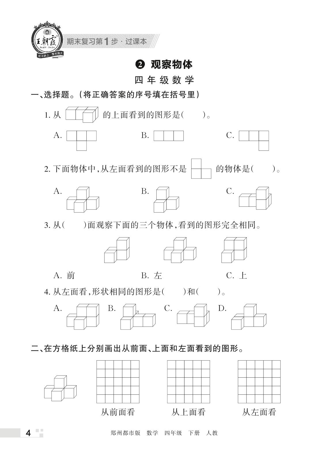 王朝霞期末过课本——2 观察物体四年级下册数学(人教版)_R220331140434226