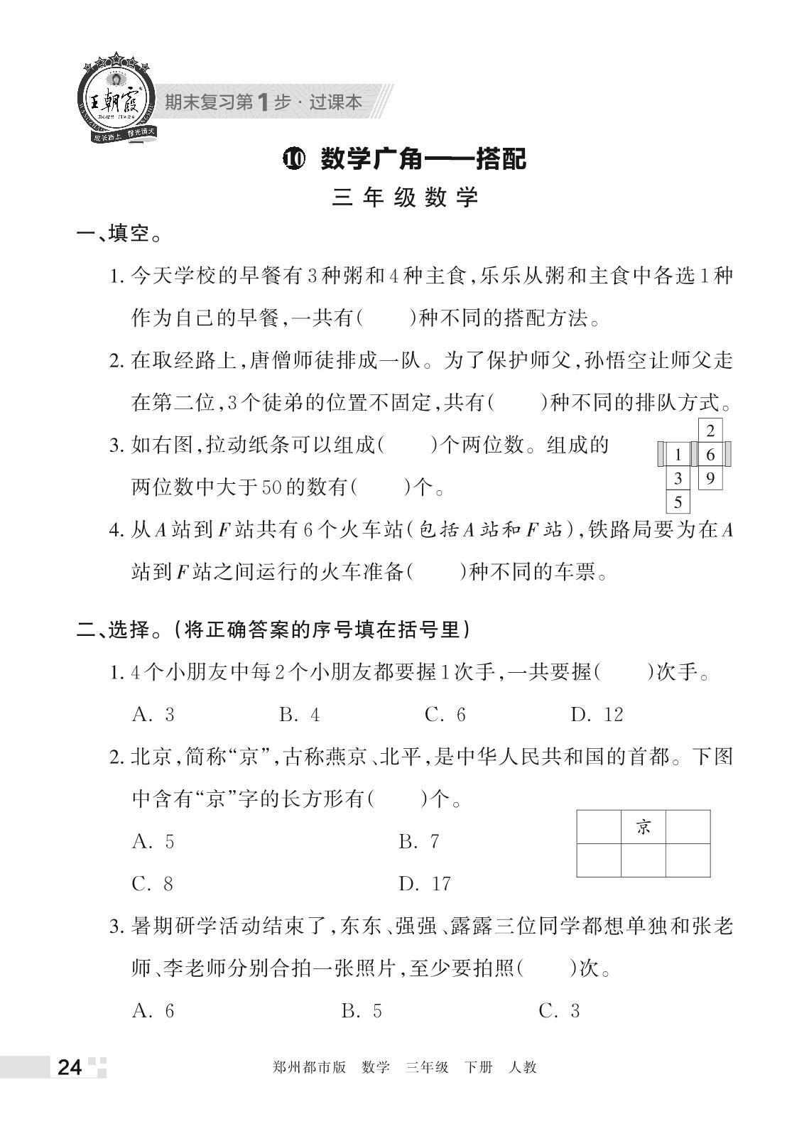 王朝霞期末过课本——10 数学广角:搭配三年级下册数学(人教版)_R220331141112256