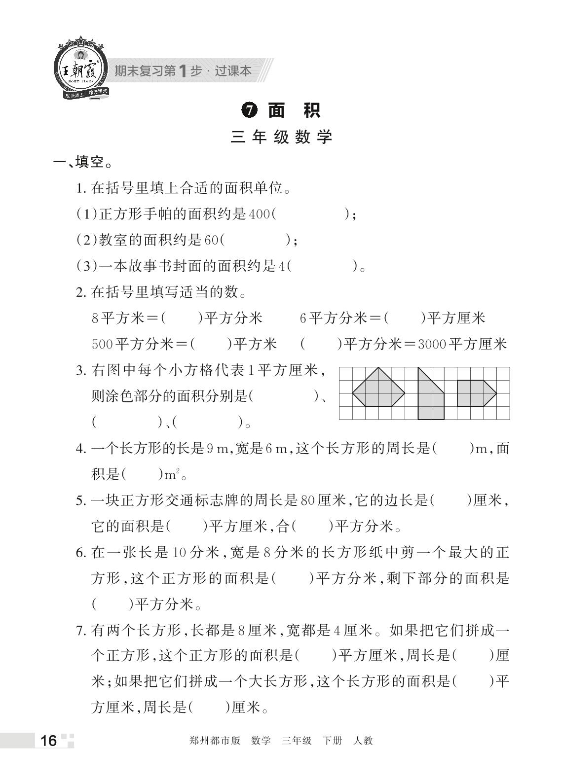 王朝霞期末过课本——7 面积三年级下册数学(人教版)_R220331141113054