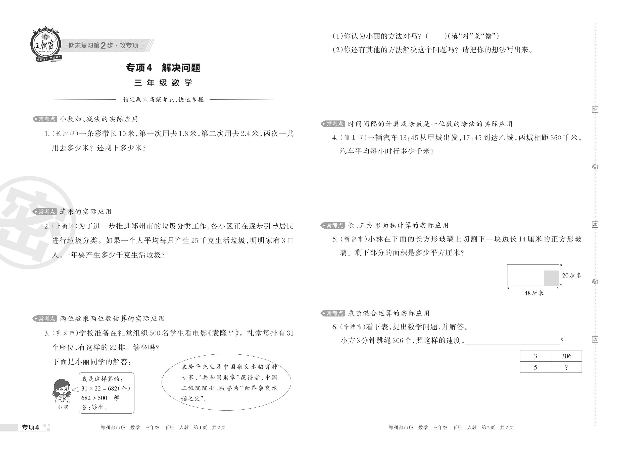 王朝霞期末专项卷——解决问题三年级下册数学(人教版)_R220331141113985【4】