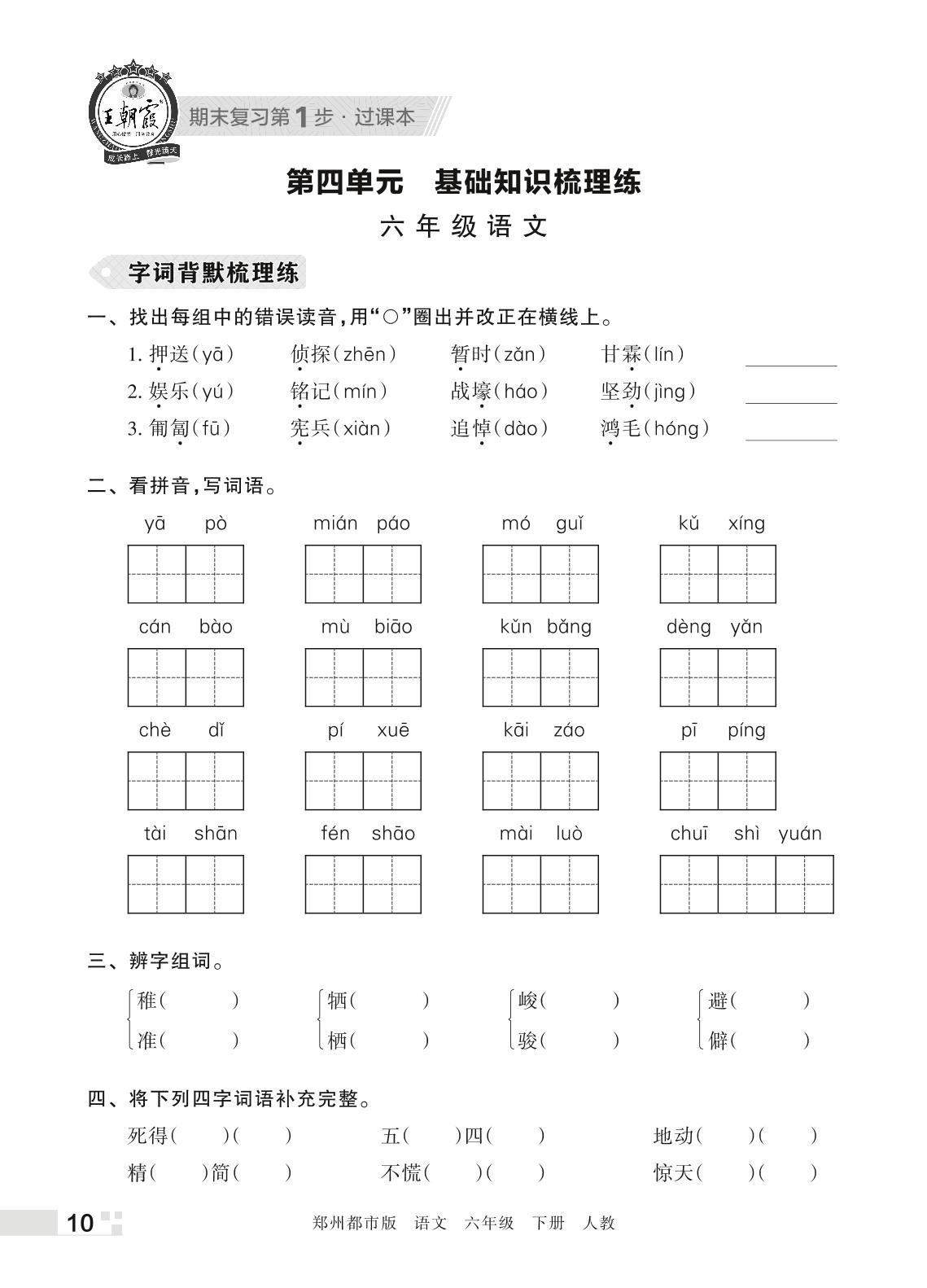 王朝霞期末过课本——第四单元 基础知识梳理练六年级下册语文(人教版)_R220331142956951